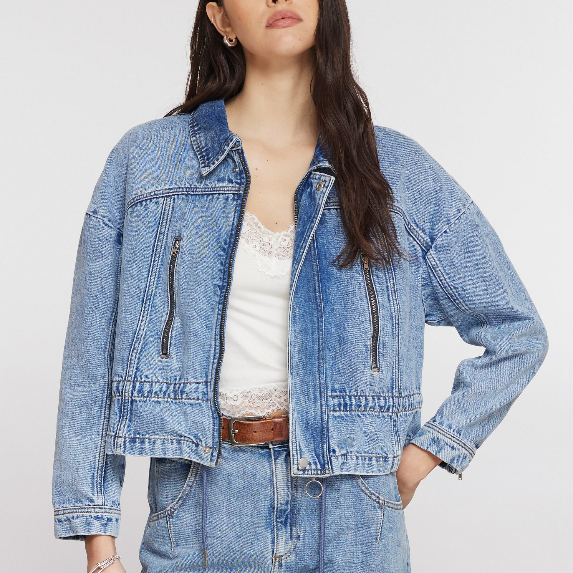 Our newest cropped jacket, finished with an adjustable internal waist cord and a reversible or removable collar, an effortlessly versatile denim jacket for spring. Reversible and removable collar adapts to your style in seconds. Internal drawcord lets you cinch the waist for a custom fit. Zip pockets keep essentials secure. Crafted from soft, midweight denim that moves with you through the season.