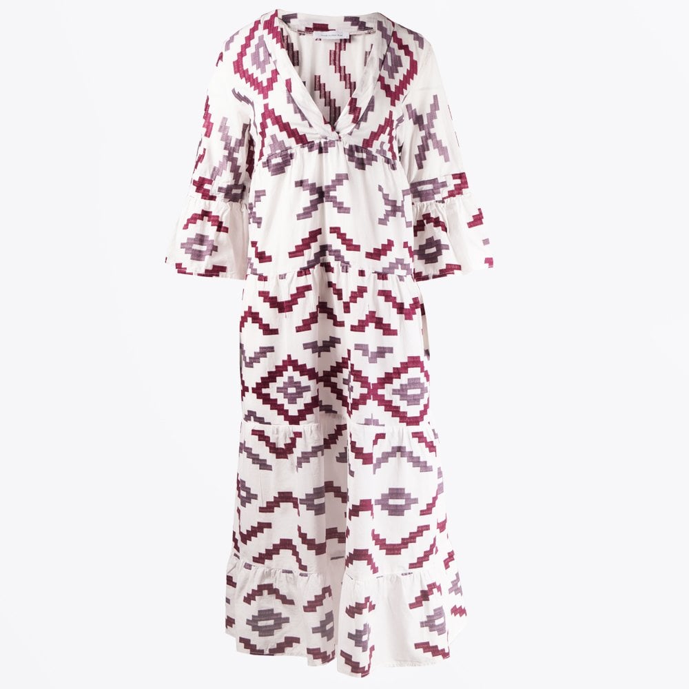 - Aztec Embroidered Midi Dress - White/Bordeaux-Aubergine