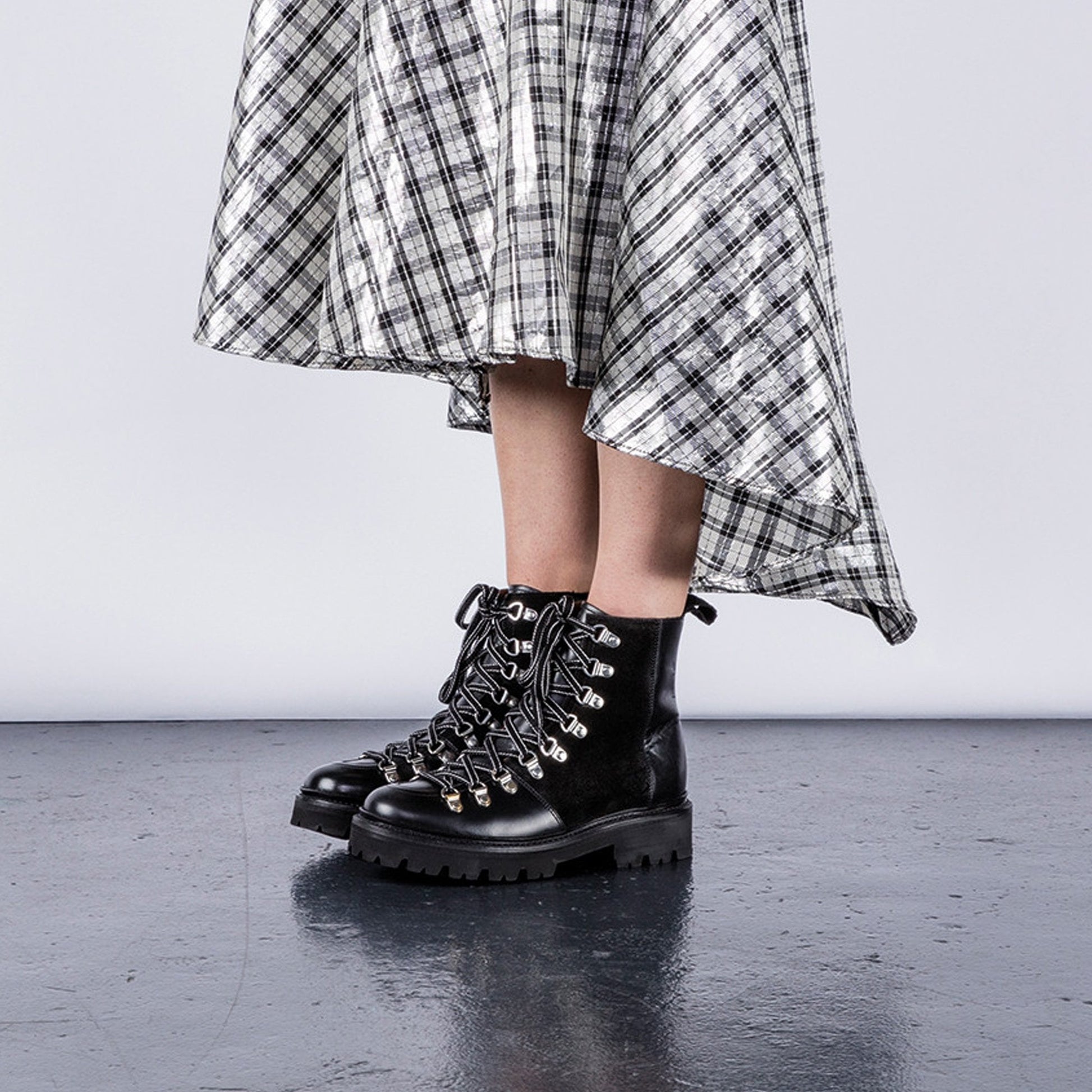 Attention to detail is the Grenson forte, which is evident from their unique shoe making process and use of high quality natural materials. As seen on Holly Willoughby in the jungle! Crafted in smooth black Colorado leather these chunky hiker-inspired boots are the perfect stylish boot for all seasons. These lightweight boots features a tonal black suede panel and chunky but super comfortable sole