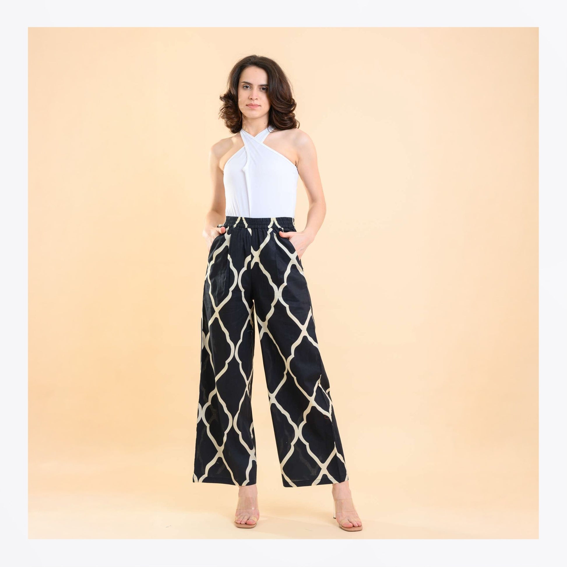 The new Dream collection reflects summer days and nights of an easy island life. Colourful yet simple and minimal, crafted from light weight cotton fabrics that delicately float with the breeze. The perfect trousers to style up or down on your next holiday destination. These trousers features a black pattern, slip on style, and an elasticated waist. Wear these pants with a cool Skall tee and some Birkenstocks.