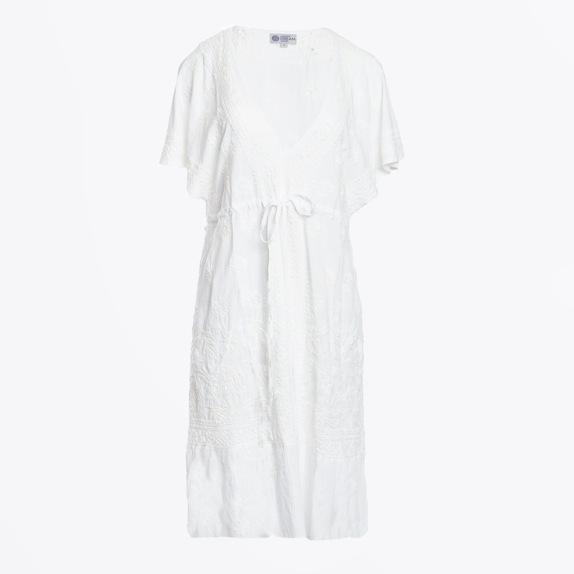 The new Dream collection reflects summer days and nights of an easy island life. Colourful yet simple and minimal, crafted from light weight cotton fabrics that delicately float with the breeze. The perfect way to add colour to your summer dress collection, this dress features a V – shape neckline, a drawstring waist and embroidery pattern design all throughout the dress finished. Wear this dress with a Veja trainers for a comfortable weekend summer outfit.