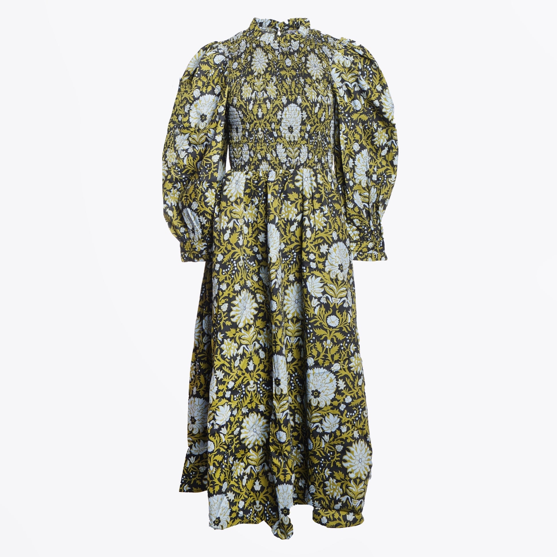 AC101 SMOKED BLUE PRINT POPLIN DRESS