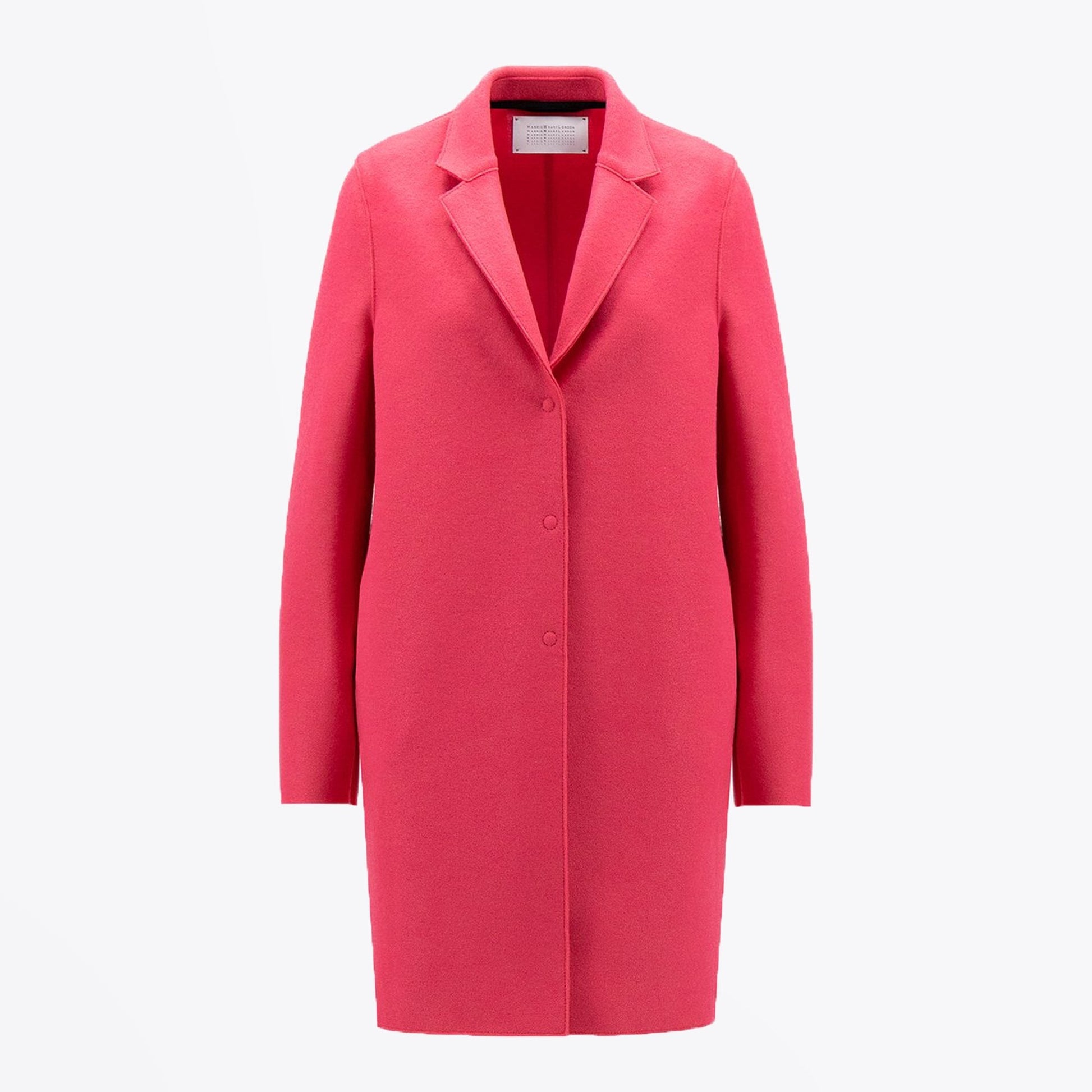 Harris Wharf conveys comfort and practicality ensuring you are protected from the elements and looking stylish. Using the finest Italian soft wools and felts this label artfully fuses traditional tailor techniques with modern designs This mid-length cocoon coat in hot pink offers a soft knitted felted wool handle and a comfortable fit. In addition this autumn coat features thin notch lapels, single-breasted three press stud button fastening, side-seam pockets, raw edge finish and raised seams. A simple yet classic coat that will carry you through the cooler months looking sophisticated and stylish!