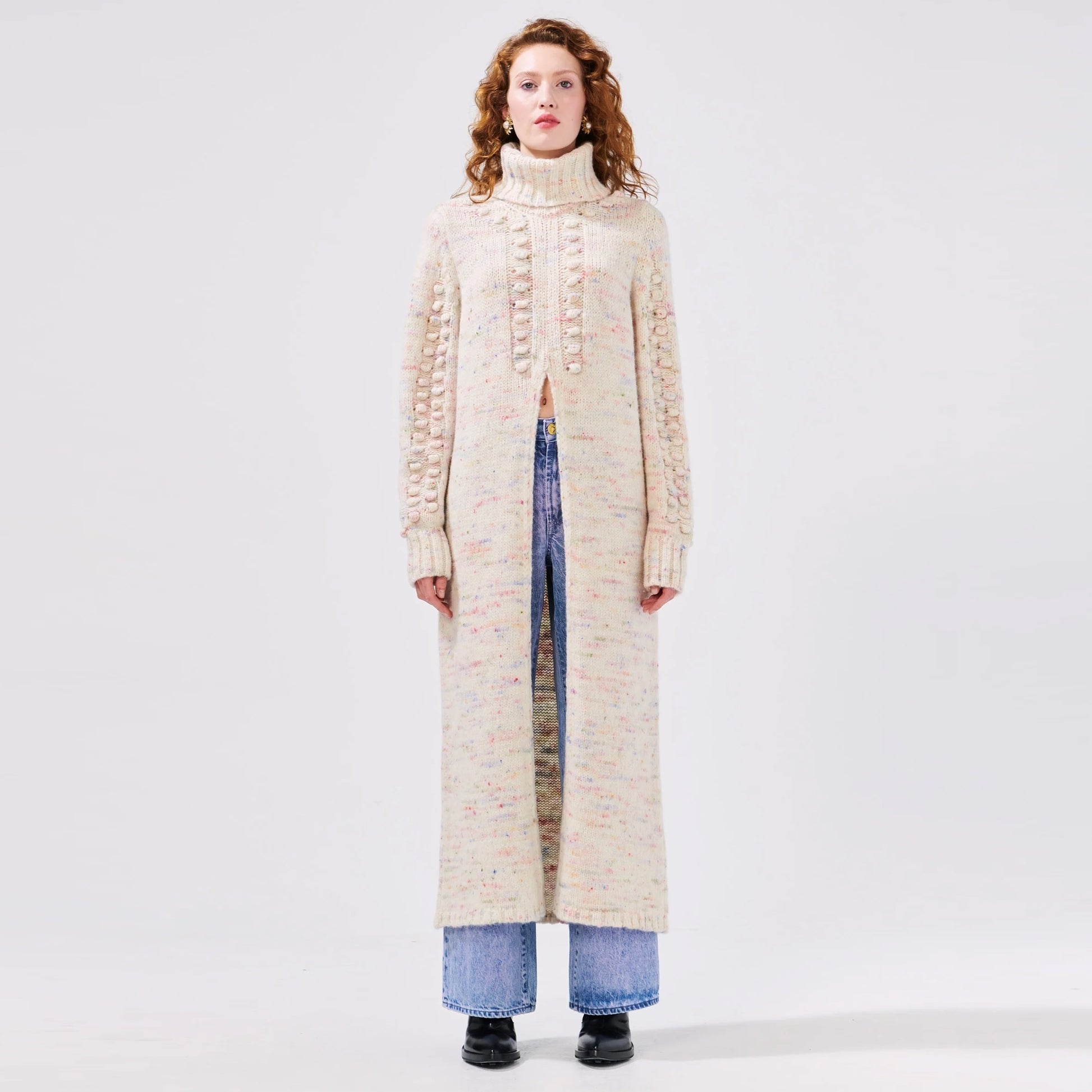 00911-KN-JP-CRM ALPACA BOBBLE JUMPER SPLT FRT