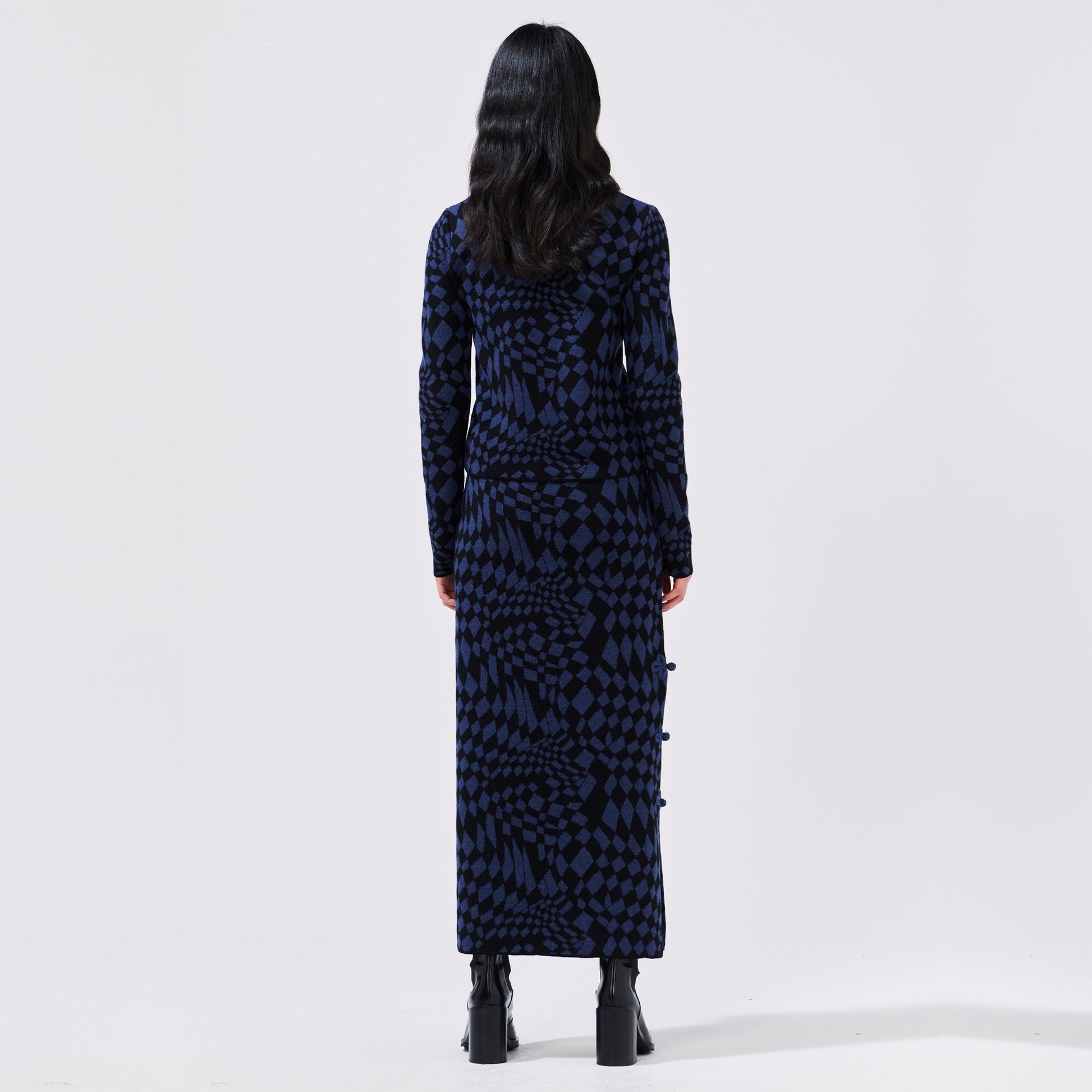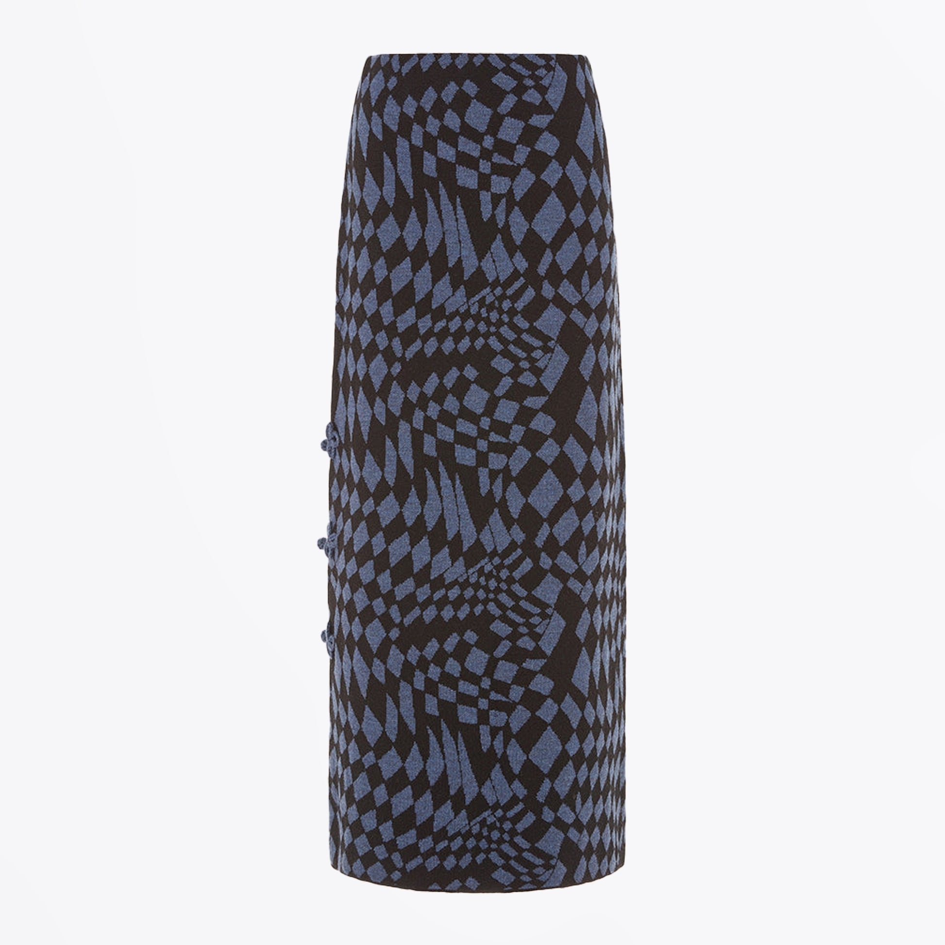 00907-KN-SK-NVB MERINO JACQUARD SPLIT SKIRT