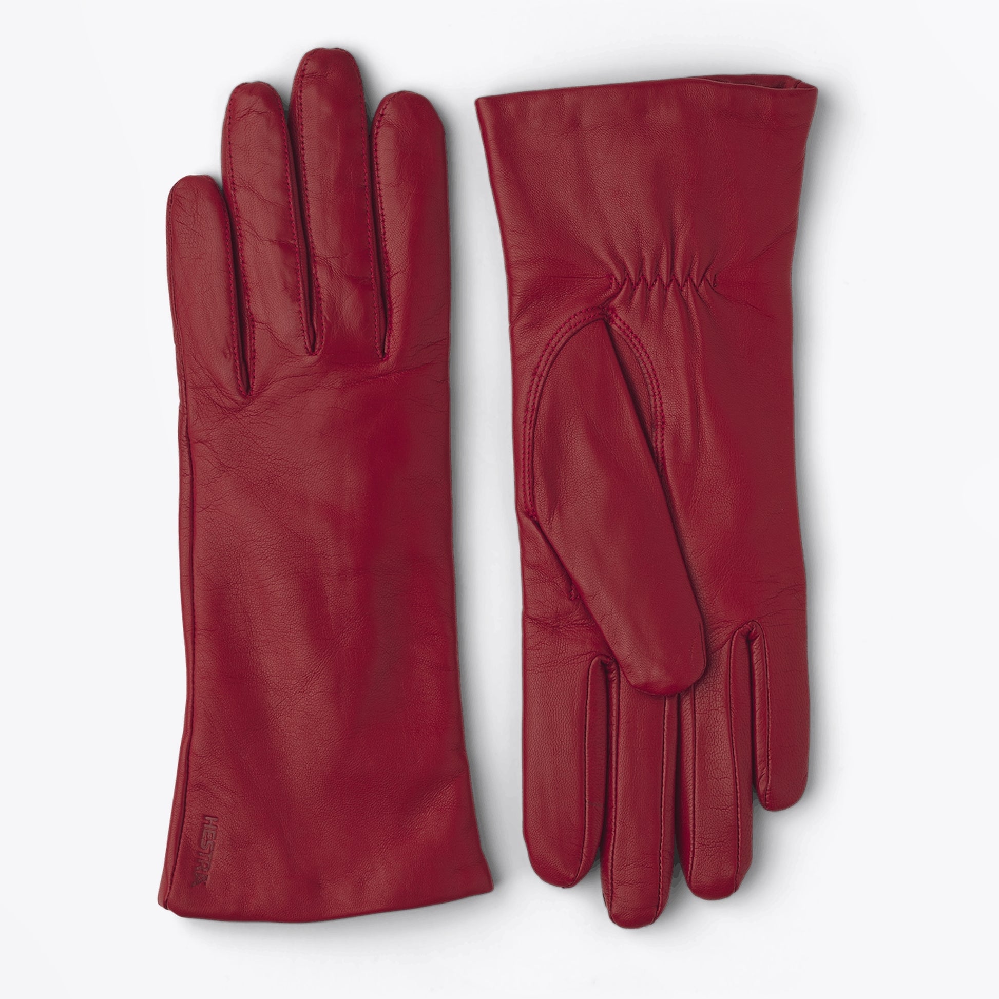 Swedish glove maker Hestra is favoured among skiers and outdoor enthusiasts worldwide because of the warmth, protection, durability, and fingertip sensitivity that their products offer in the most varied conditions. Hestra's gloves are manufactured in their factories, and they personally buy all leather, fabric, wool, and other materials, which gives them control of the production chain and ensures a high level of quality. Made of hairsheep leather with wool lining, these red gloves keep the hands warm during cold and damp days. These seasonally focused gloves have an elastic at the wrist and can be pared down or dressed up to complement a wide variety of outfits and style choices.