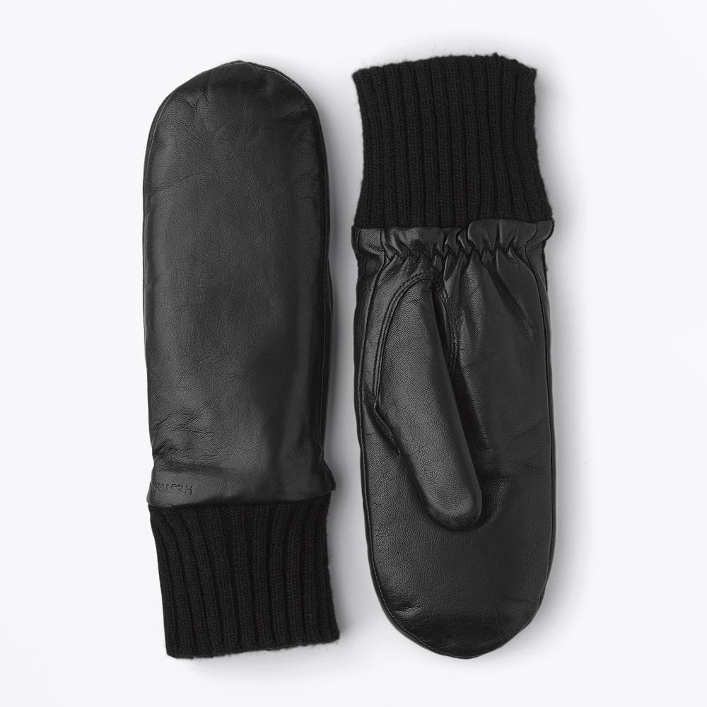 - Tina - Leather Mitten Gloves - Black