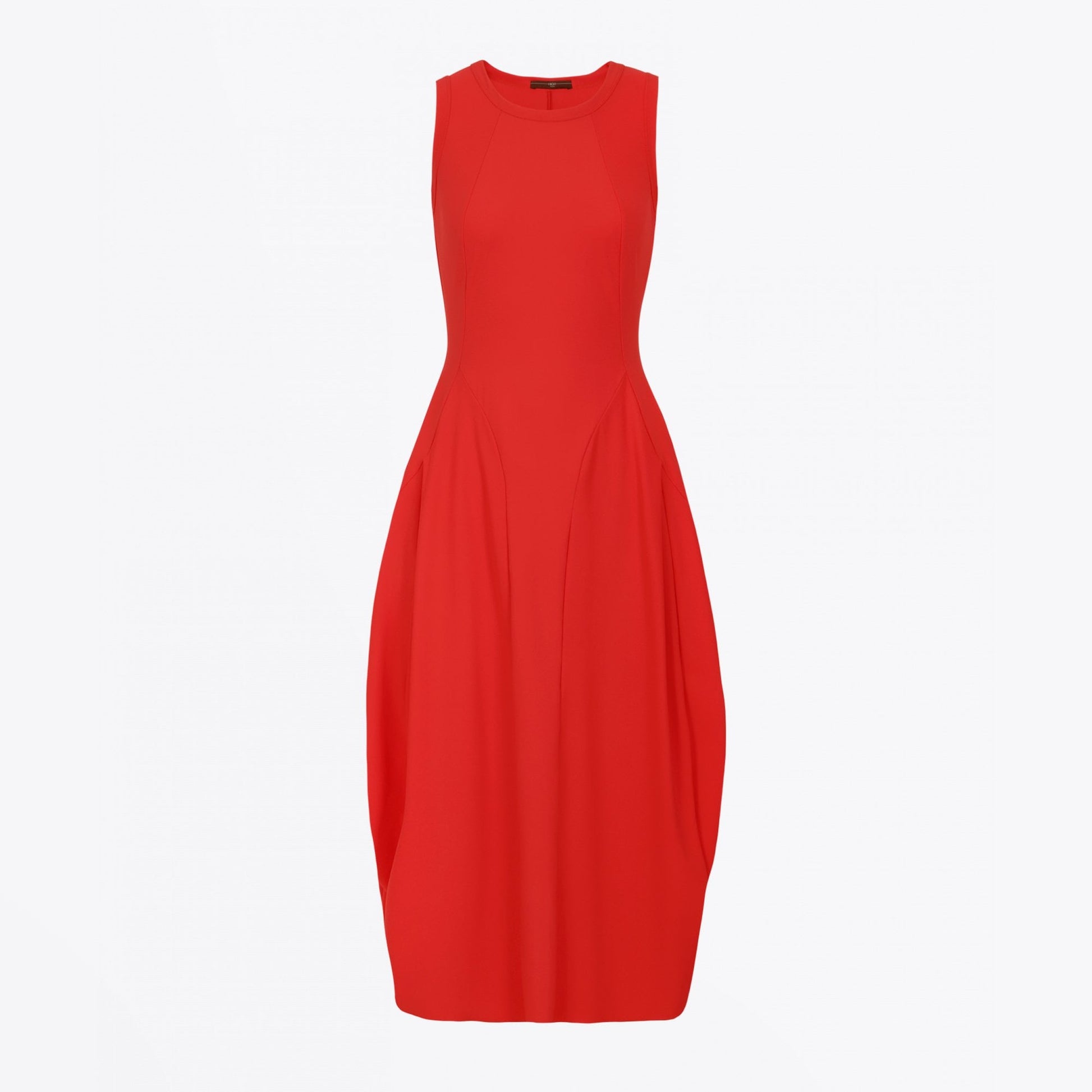 High by Claire Campbell offers innovative and premium clothing that encompasses the female silhouette. Volume and layering are the key approaches adopted by High to create the polished, sophisticated and feminine look that we all covet. This midi dress in bright red is made from a smooth stretch fabric with multi-seamed skinny bodice. This extremely comfortable and lightweight dress has outstanding shape retention and features pleats at side front and across back skirt with ruched, curved side seams creating a full "balloon" skirt. Other features include the neck and armholes bound in self fabric and full hem dips lower at front. Slips on. This dress is the embodiment of modern and forward-thing high fashion.