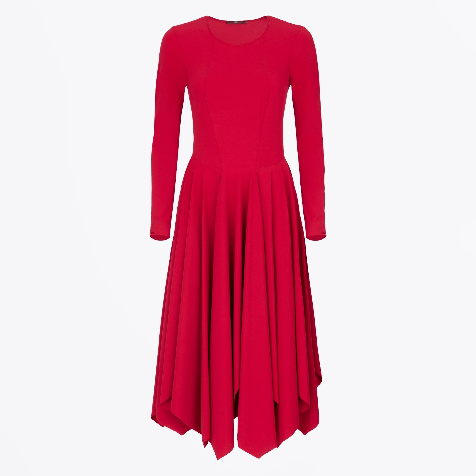 High by Claire Campbell offers innovative and premium clothing that encompasses the female silhouette. Volume and layering are the key approaches adopted by High to create the polished, sophisticated, and feminine look that we all covet. Add interesting shape to your designer wardrobe with this option from High. This dress features a rounded neckline, slim bodice, long slim inset sleeves, straight cuffs, inseam pockets complete with raw cut them. . Wear this dress with a pair of designer footwear.