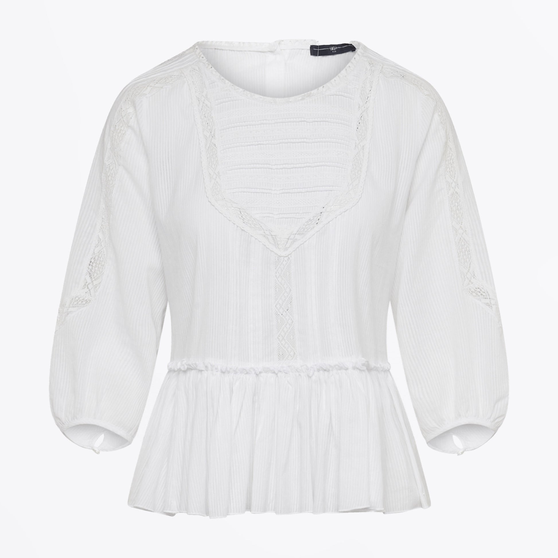 High by Claire Campbell offers innovative and premium clothing that encompasses the female silhouette. Volume and layering are the key approaches adopted by High to create the polished, sophisticated, and feminine look that we all covet. Giving your tops an interesting twist, this shirt features lace ribbon details, with ¾ length sleeves, pin tuck details, and a ruffled hem. Wear this top with your favourite pair of jeans and some designer trainers.