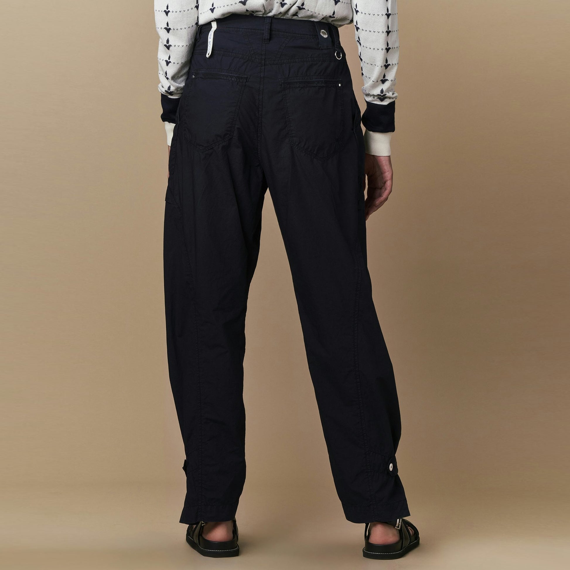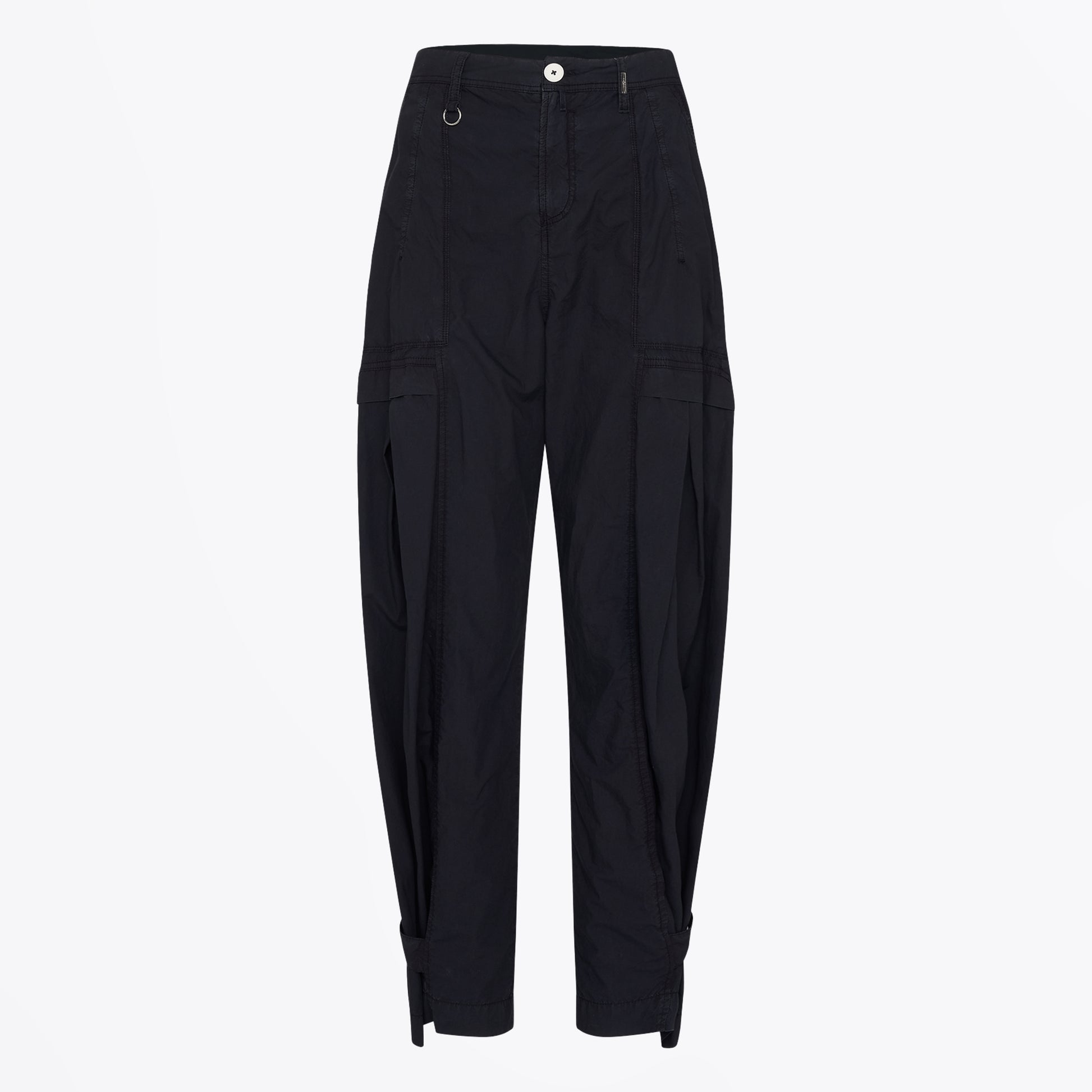 High by Claire Campbell offers innovative and premium clothing that encompasses the female silhouette. Volume and layering are the key approaches adopted by High to create the polished, sophisticated, and feminine look that we all covet. Add interesting shape to your designer wardrobe with this option from High. This trouser features slanting hip pockets, button and zip fastening, belt loops, two patch pockets, inset band across the top hip, stitched-thru centre leg seams with a button and tab at the lower leg. Wear this trouser with a Munthe t-shirt and pair of Veja sneakers.