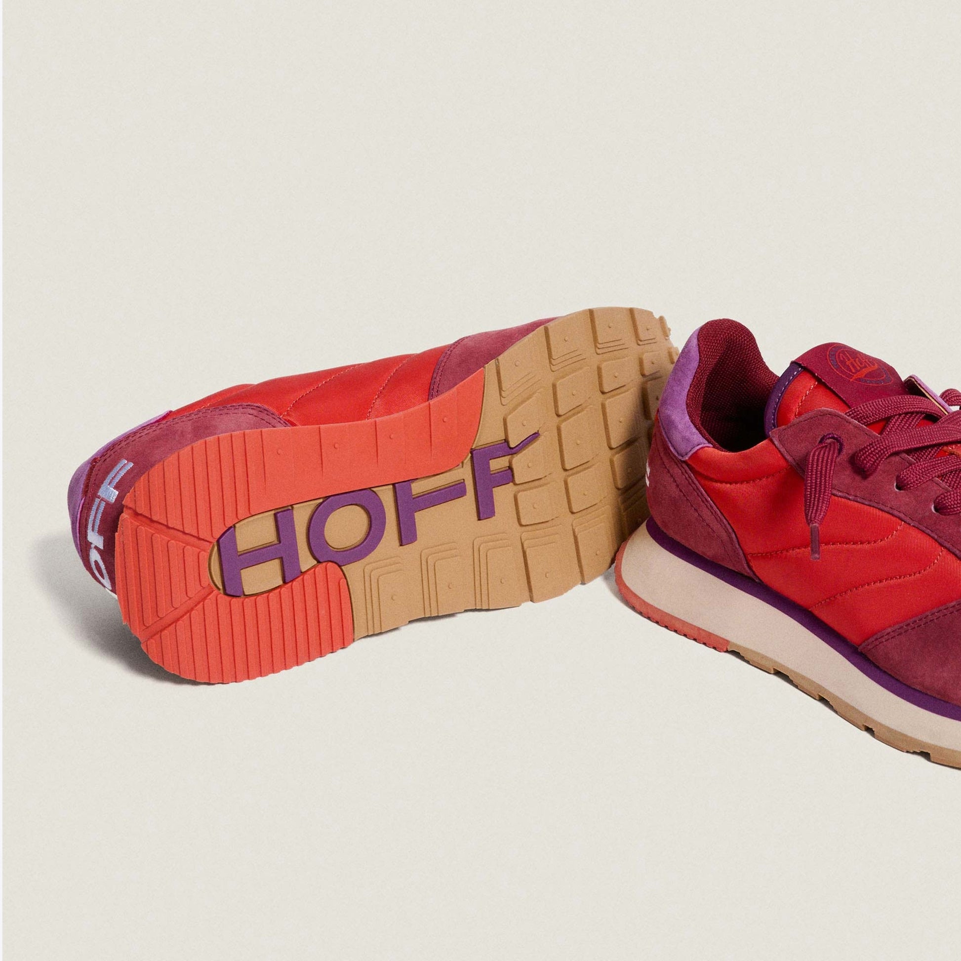 Taking inspiration from iconic cities and places across the world, Hoff is truly a global brand. One of our newer brands at Mr and Mrs Stitch, we fell in love with their mastery of merging interesting colours and contrasting textures to create pure art for your feet. These track and field Naxos sneakers encapsulates a fusion of classic and contemporary style. This sneaker is crafted from a rich red nylon with red and pink suede panels. The sole features a waffle patterned rubber sole complete with an embossed logo. Wear these trainers with any casual outfit to add a pop of colour.