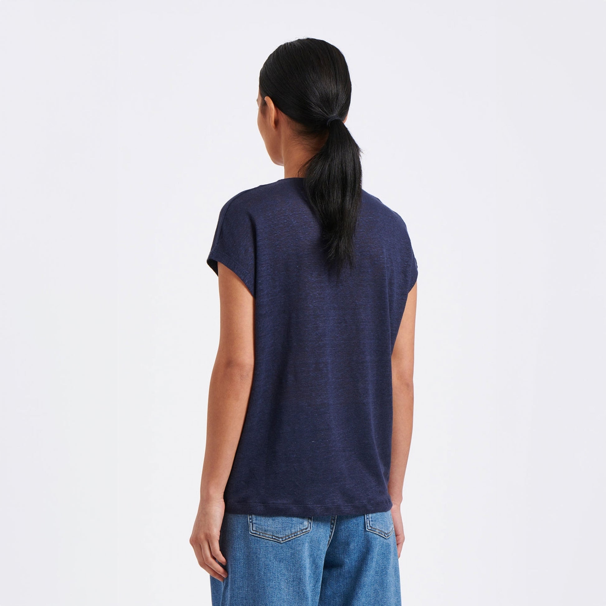 Humility conveys contemporary, comfort and practicality in her designs. The flexibility in mixing and matching fabrics and masterfully cut lines complement the female silhouette exquisitely. Update your summer essentials with this lightweight option from Humility. Crafted in a lightweight linen material, this Bora knitted top features a V-neckline, short sleeves, and the signature stitched Humility logo on the back. Wear this top with a pair of Paige jeans and some Veja sneakers.