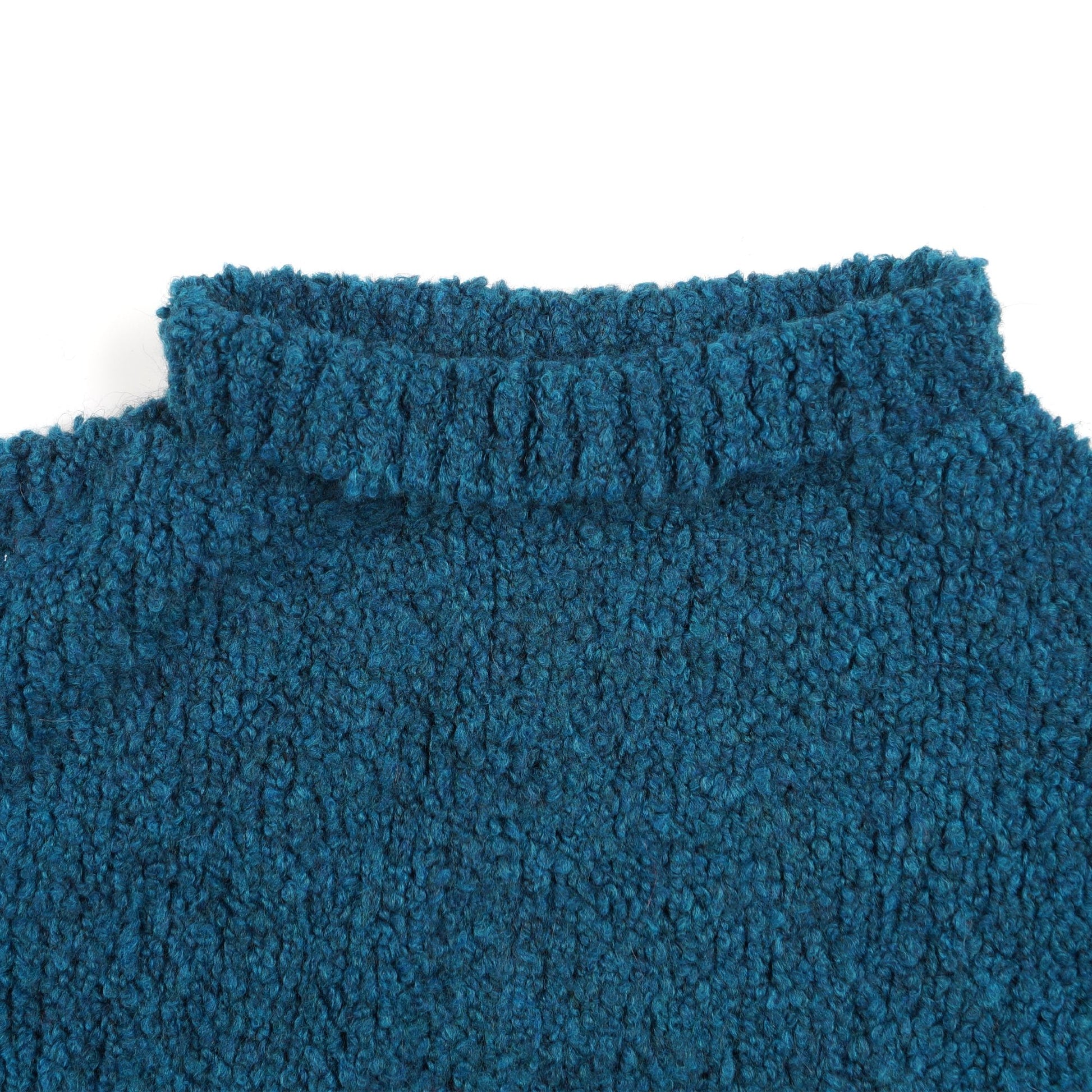 Humility conveys contemporary, comfort and practicality in her designs. The flexibility in mixing and matching fabrics and masterfully cut lines complement the female silhouette exquisitely. Update your knitwear collection with some colour. This jumper is knitted from a soft boucle yarn in a teal shade, with a ribbed high neckline, ribbed cuffs, and hem, in a slight loose fit. Wear this jumper with a pair of Citizens of Humanity jeans and some leather heeled boots.