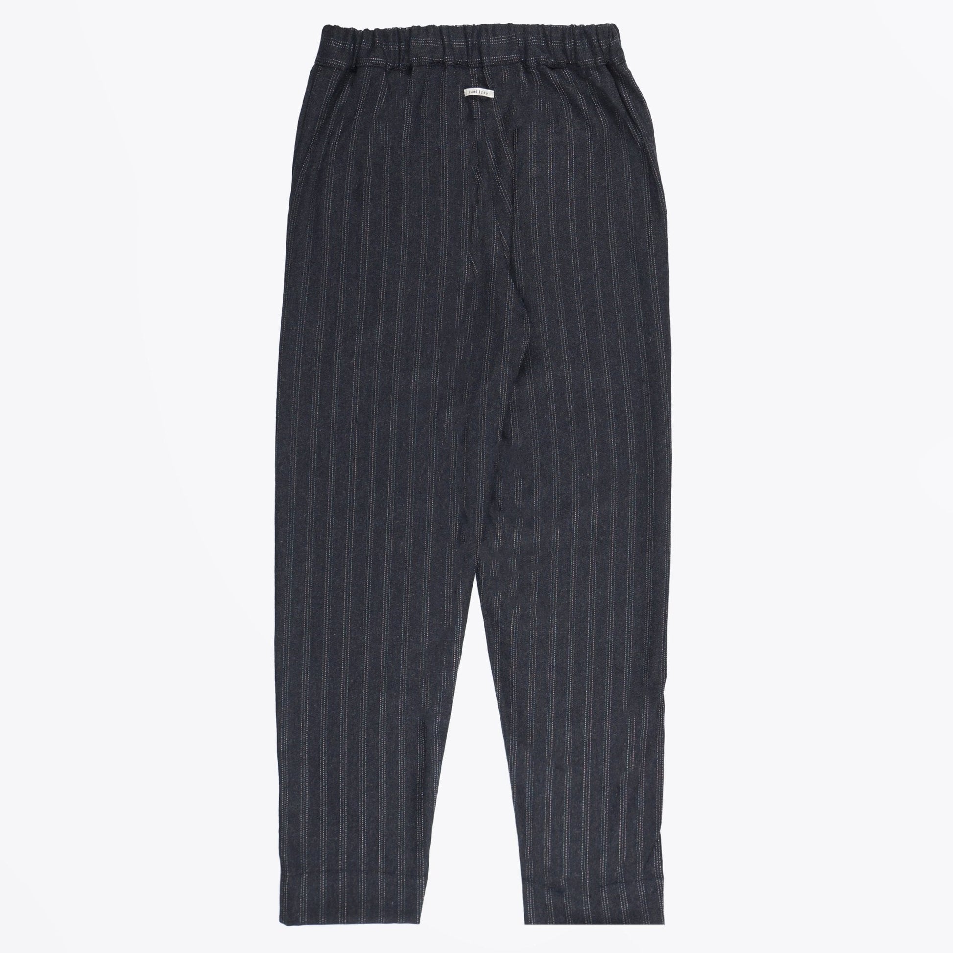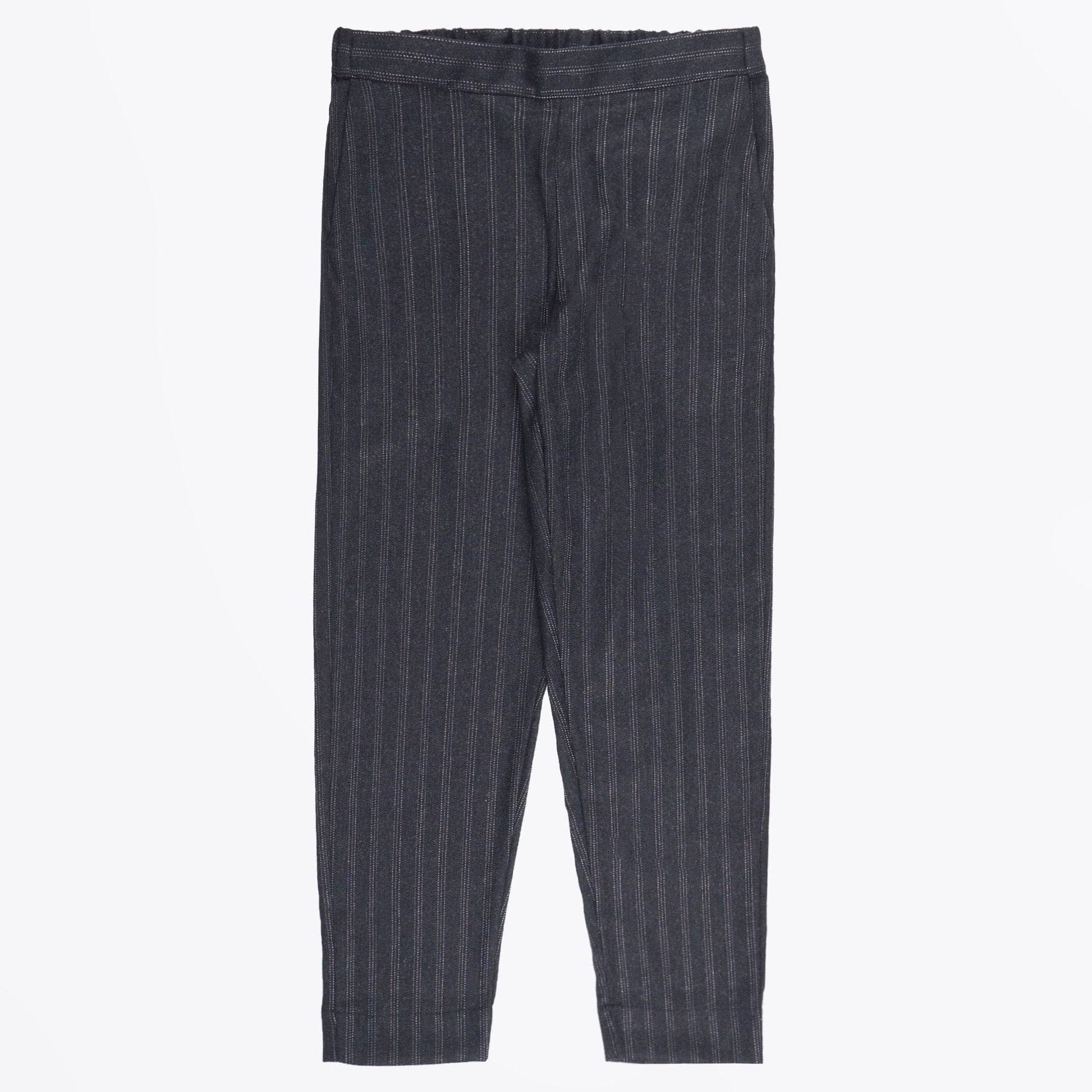 Humility conveys contemporary, comfort and practicality in her designs. The flexibility in mixing and matching fabrics and masterfully cut lines complement the female silhouette exquisitely. These trousers are crafted with a vertical striped pinstripe design, with an elasticated waistband and a branded fabric tab at the back waistline. Wear these trousers with a high neck fitted top and some heeled boots.