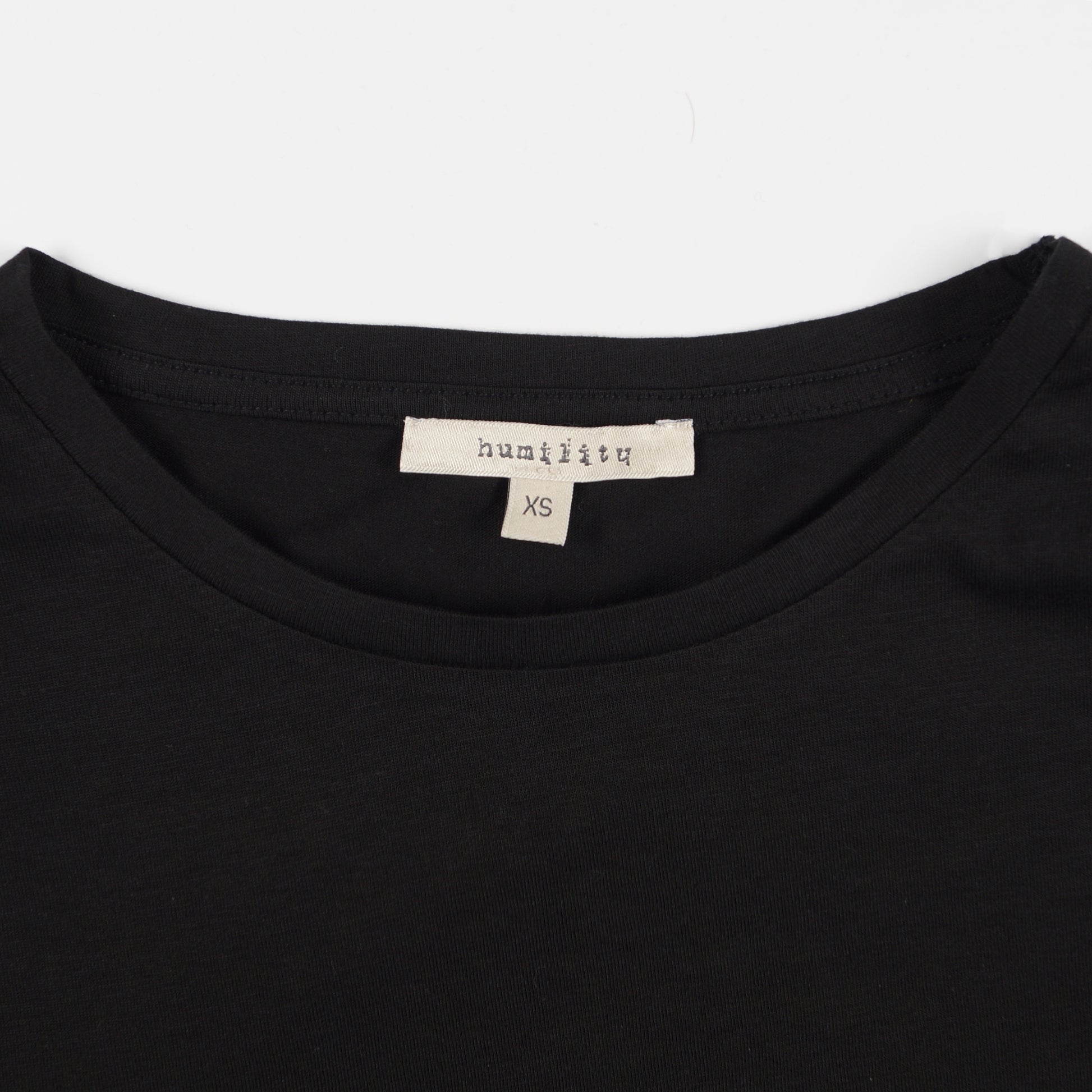 Humility conveys contemporary, comfort and practicality in her designs. The flexibility in mixing and matching fabrics and masterfully cut lines complement the female silhouette exquisitely. A great option for your everyday wardrobe, this black Humility top features shoulder pads, adding an interesting shape to your silhouette, with a bateaux neckline, long sleeves, and a fitted style. Wear this top under a Ba&sh jacket and some Citizens of Humanity jeans.