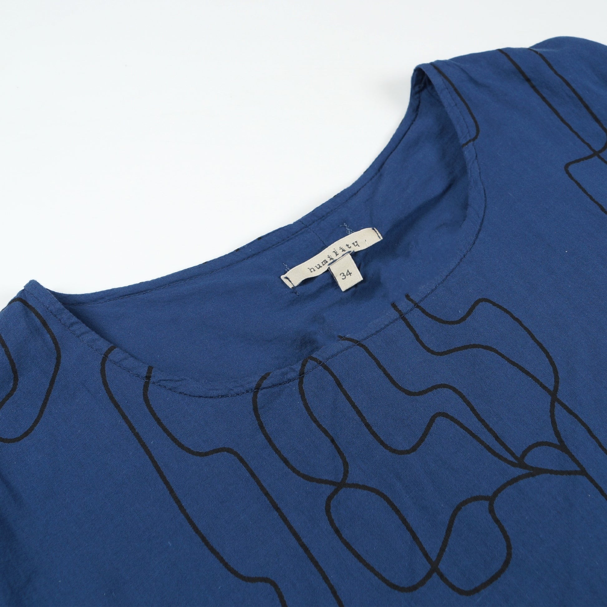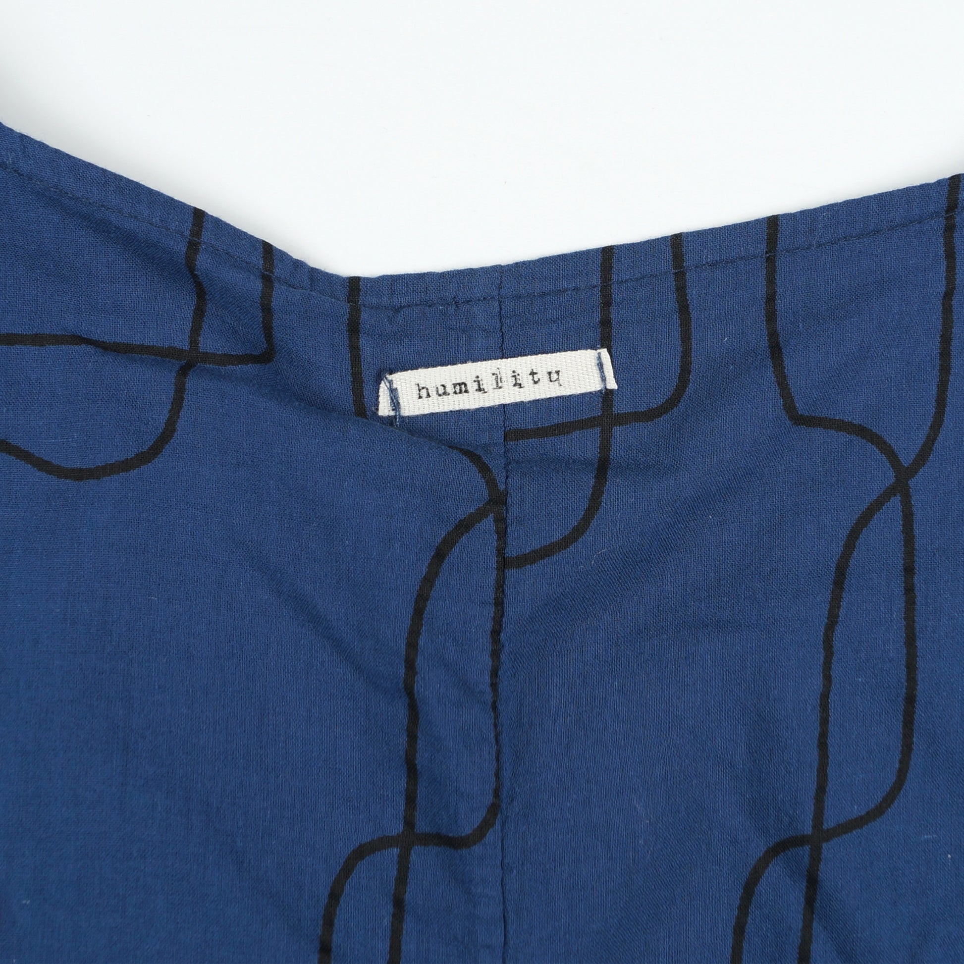 Humility conveys contemporary, comfort and practicality in her designs. The flexibility in mixing and matching fabrics and masterfully cut lines complement the female silhouette exquisitely. Giving your summer dresses a subtle print detail, this cotton dress features a minimalistic squiggle print in black on a navy base. This sleeveless dress is crafted in cotton material, with side pockets, a round neckline, and buttoned details on the chest. Style this dress with a pair of Veja trainers for a more casual look.