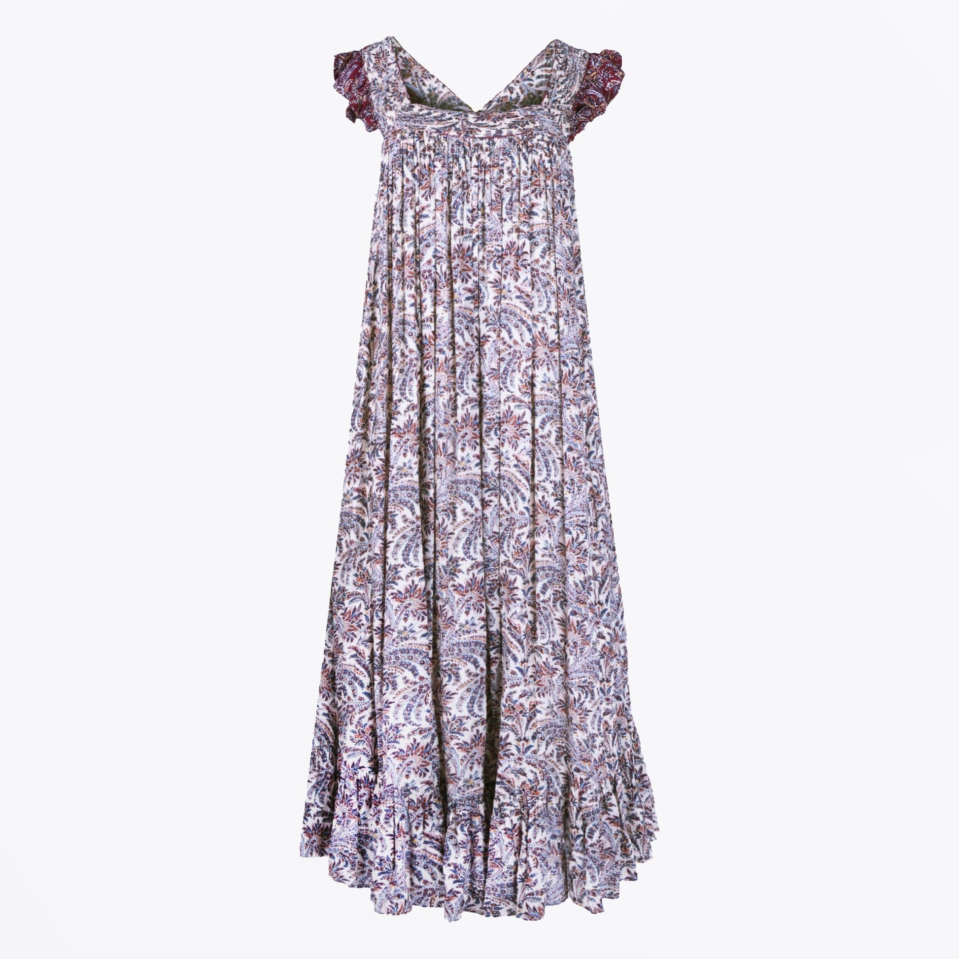 Born through the collaboration of a renowned fashion workshop and an enthusiastic designer, Idano is known for bringing Parisian ready-to-wear to the rest of the world. Idano pride themselves on their selectiveness with their materials and their ability to create on trend clothes, that ooze personality and uniqueness. Perfect as an everyday dress, but also easily styled up, this dress is a great statement piece for your new season wardrobe. This dress has cross back straps and features a paisley print, with frilled cuffs, and a ruffled hem. Wear this dress with your favourite pair of trainers and a denim jacket for an everyday look, or style up with a pair of heeled espadrilles.