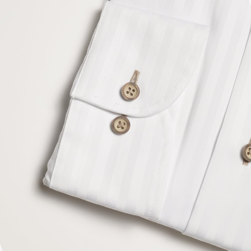 Jackett & Sons is a quality menswear label that creates handsomely tailored shirts that are effortlessly sophisticated with a contemporary twist. With close attention to detail, this classic structured shirt hosts a satin stripe pattern in white, curved single cuffs & a button-down collar featuring a camouflage insert.  Perfect for business attire or for a special occasion.