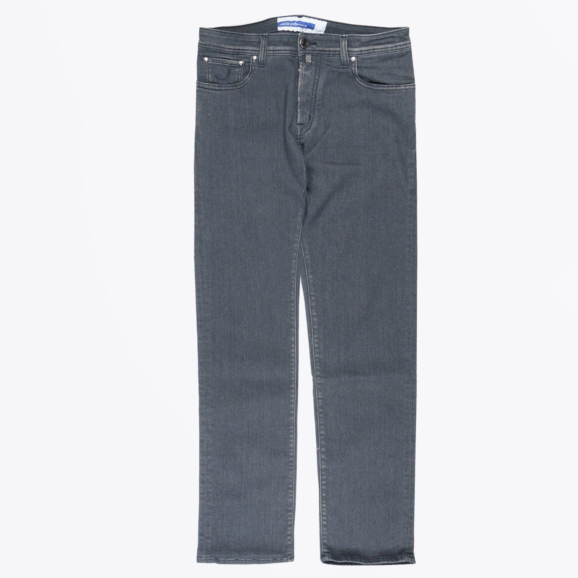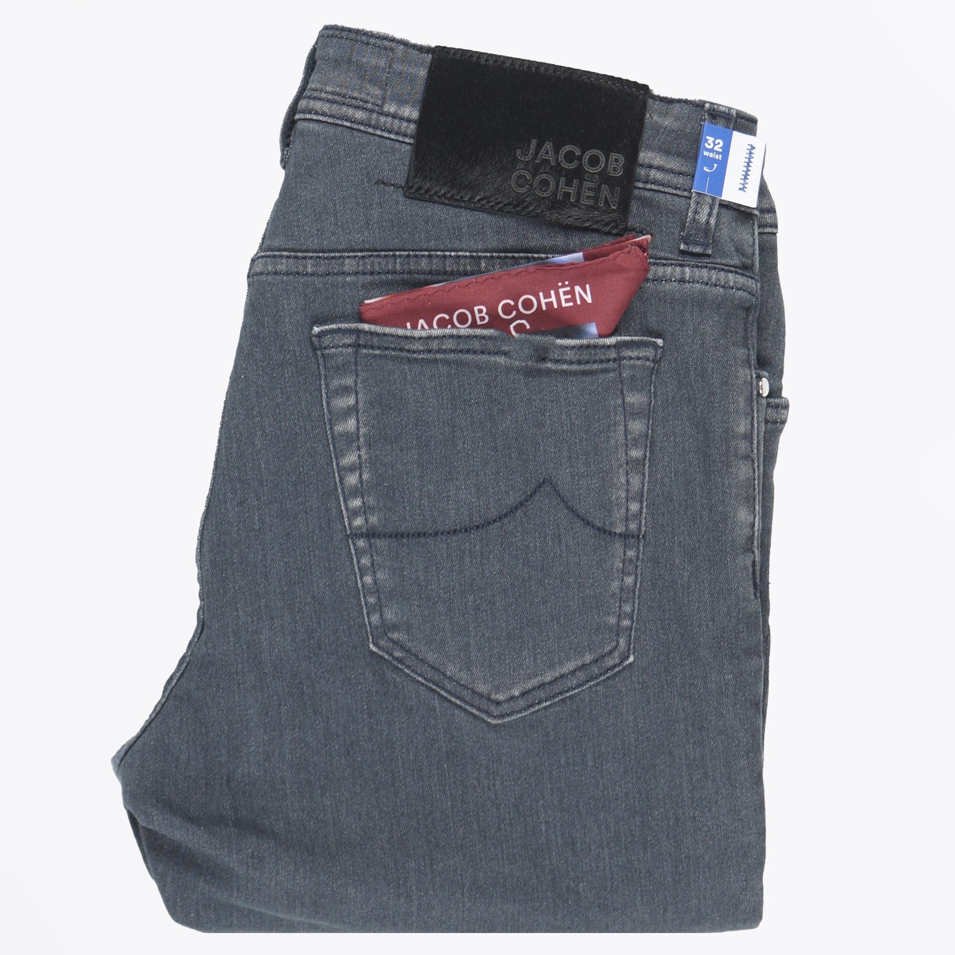 Jacob Cohen as a brand is a true symbol of denim jean couture.  Using the highest quality of denim, these jeans have a perfect fit, superb materials, and a glorious finish. These grey jeans are crafted in a slim fit, with black coloured top stitching, dark silver hardware, a black button fastening, a 5-pocket style, and an embroidered logo on the coin pocket. These jeans also have a multi coloured handkerchief, and a black pony hair leather patch on the back waistband. Wear these jeans with any of your weekend outfits and pair with some designer trainers.