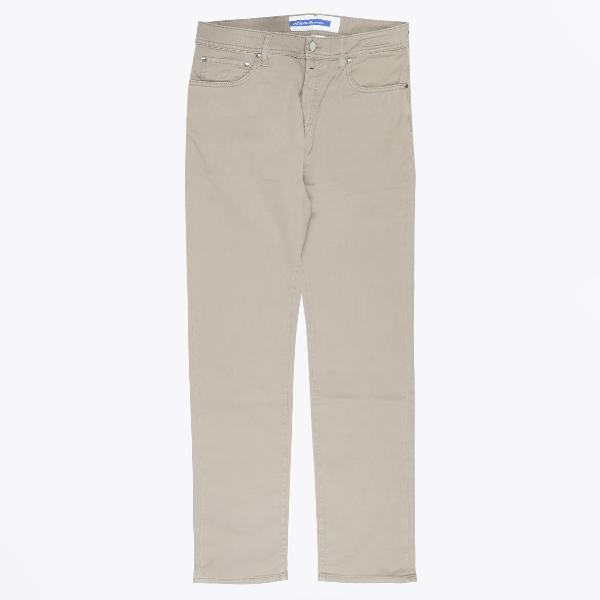 Jacob Cohen as a brand is a true symbol of denim jean couture.  Using the highest quality of denim, these jeans have a perfect fit, superb materials, and a glorious finish. These beige jeans are crafted in a stretch cotton, with beige coloured top stitching, dark silver hardware, a beige button fastening, a 5-pocket style, and an embroidered logo on the coin pocket. These jeans also have a black handkerchief, and beige pony hair leather patch on the back waistband. Wear these jeans with any of your weekend outfits and pair with some designer trainers.
