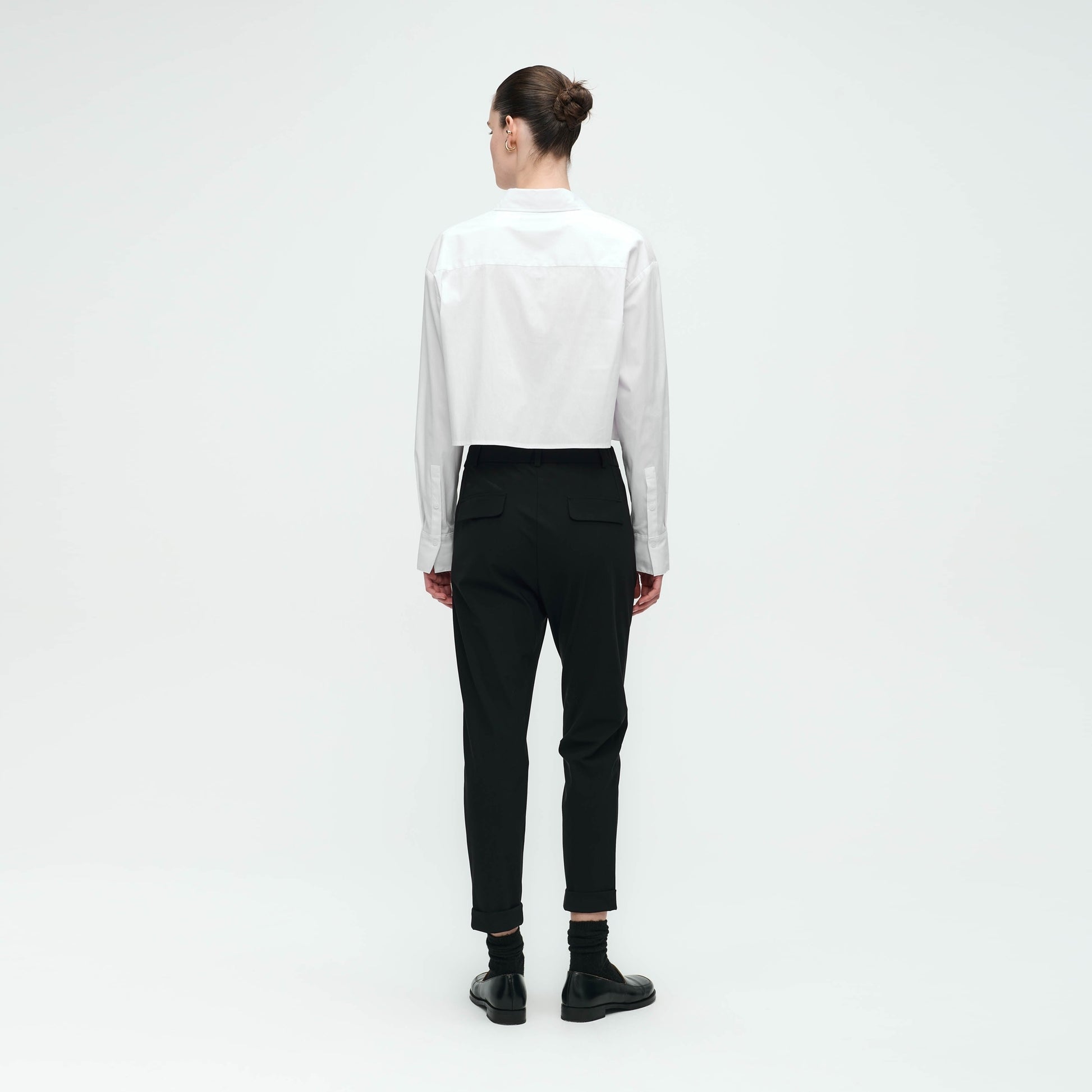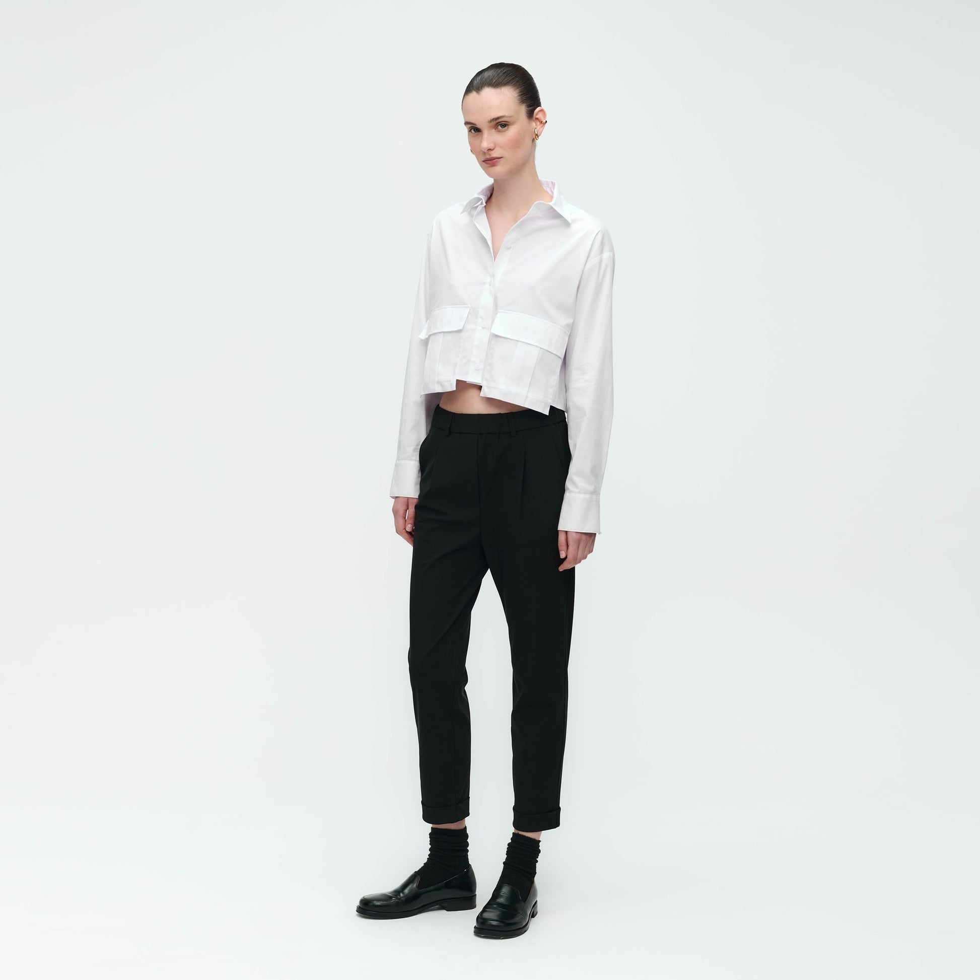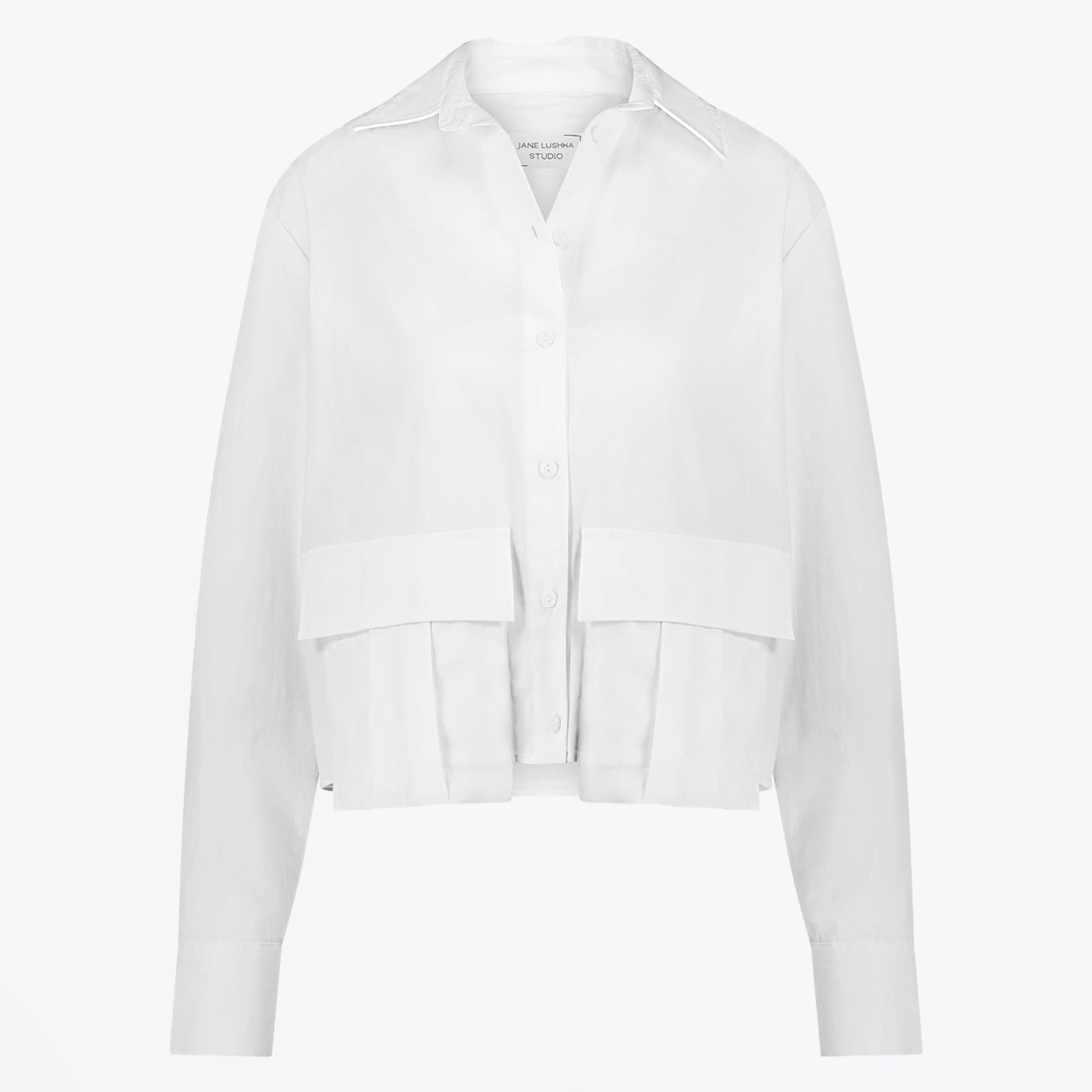 Jane Lushka strives for the highest quality women’s clothing using top quality materials and the best modern production techniques. The brand puts importance on sustainable fashion so not only are you choosing quality sophisticated clothing but also helping the sustainability of the fashion Industry. Upgrade your wardrobe with this option from Jane Lushka. This George blouse features a collared neckline, button up fastening, dropped shoulders, long sleeves and two front patch pockets. Wear this blouse with some Raffaello Rossi trousers and Veja sneakers.