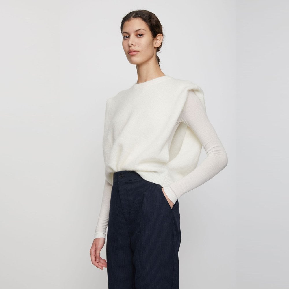 JUST female is a Copenhagen-based contemporary, ready-to-wear brand with an environmentally and socially friendly approach to fashion. At JUST female you will find high quality ready-to-wear fashion with essential styles that can be dressed up or down for life’s many festivities, likely to become wardrobe stables for many seasons to come. This warm and soft knitted vest made from a certified mohair blend features a round neck with rib, defined shoulders, and is slightly oversized. Style it over anything from blouses to shirts and dresses on colder days.