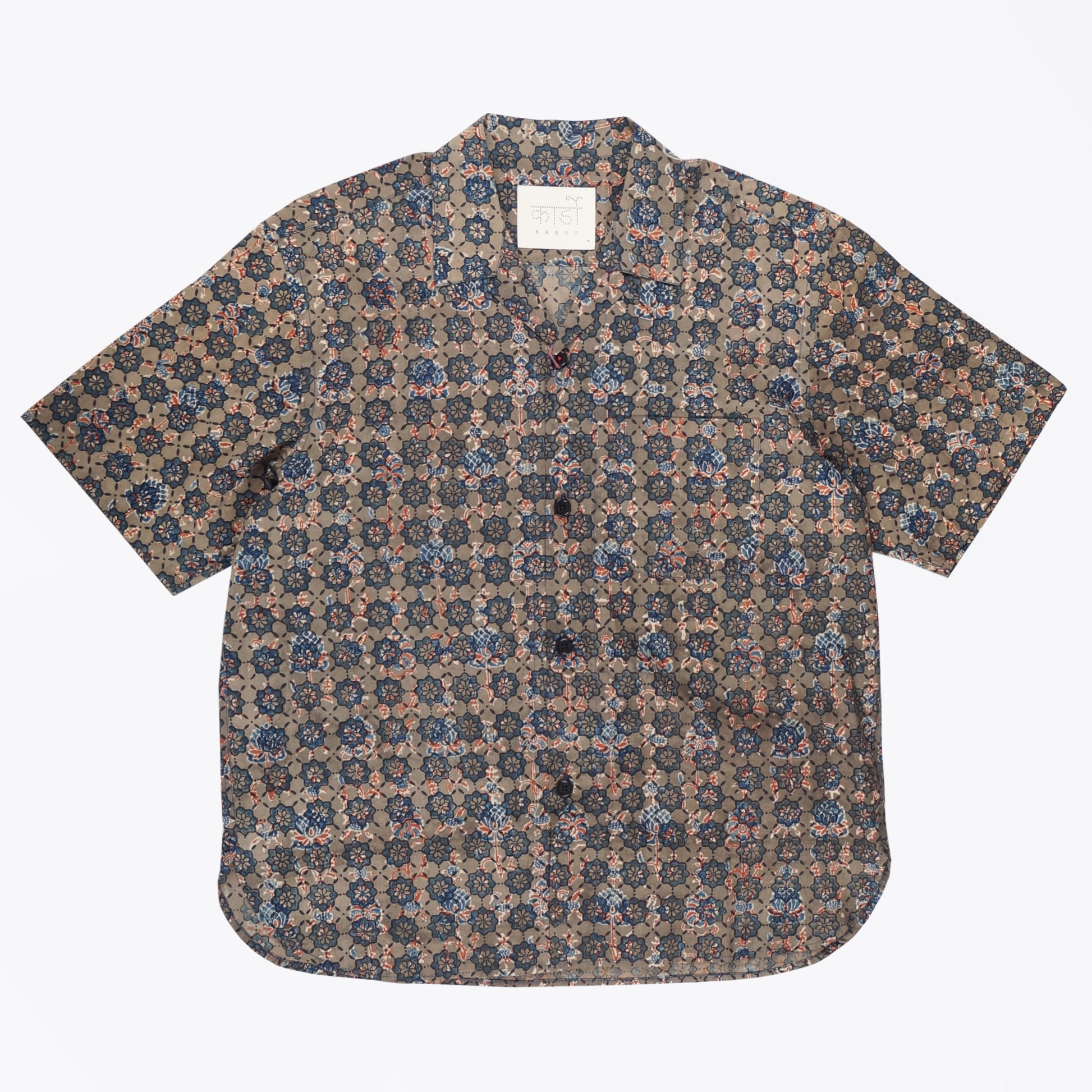 One of our coolest summer menswear labels, KARDO is inspired by traditional workwear and tailoring. KARDO dresses the modern man with subtle twists on classic silhouettes and honours traditional weaving, dyeing, and printing techniques in India. The brand actively supports and collaborate with handloom weaving communities throughout India in the hope that these traditional techniques don’t die out and their impact on the environment is as low as possible. This shirt is crafted from lightweight cotton, and features an ajrakh block print motif in a geometric floral pattern, button up fastening, camp neckline and curved hem. Wear this shirt with the matching Universal works trousers and Victoria sneakers.