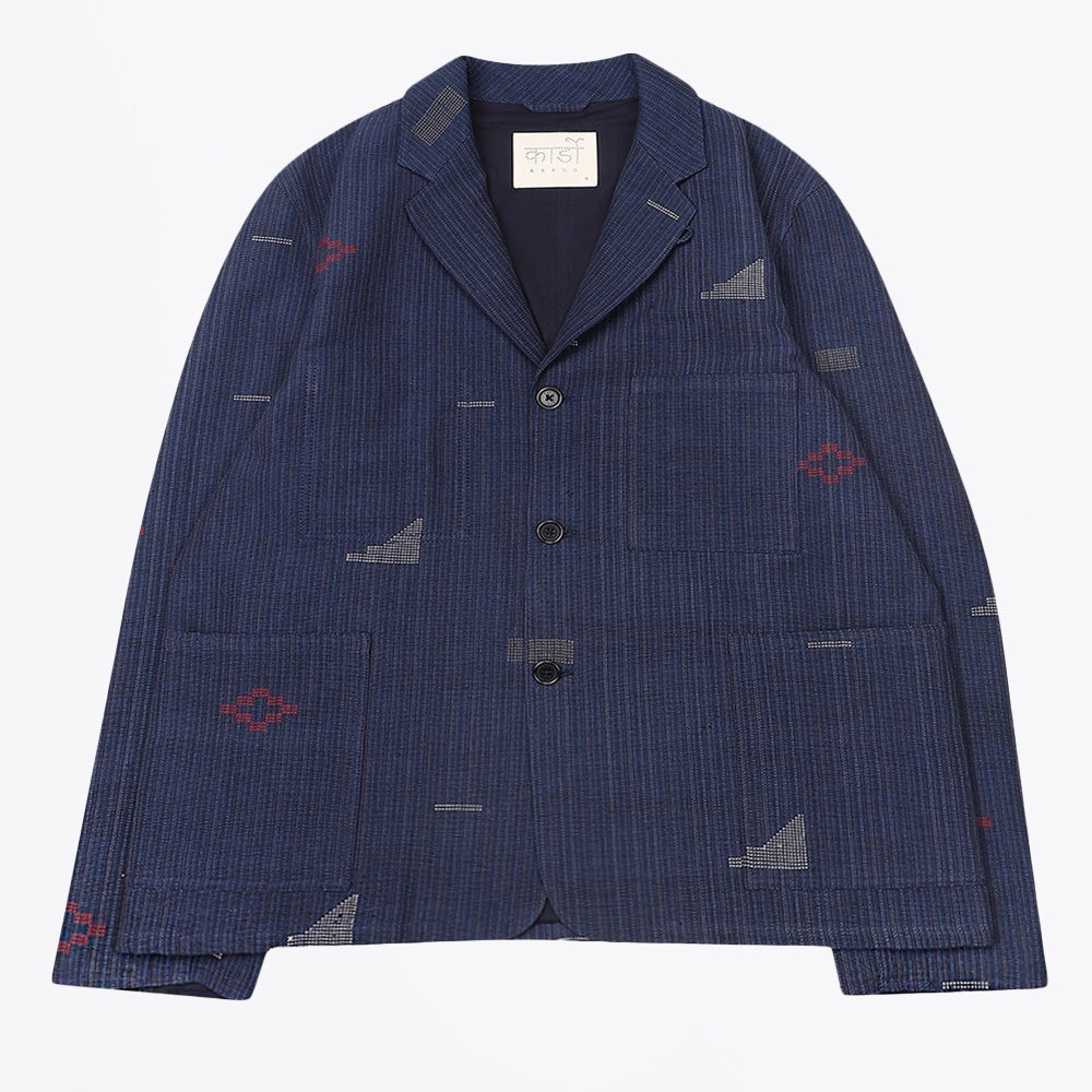 One of our newest menswear labels, KARDO is inspired by traditional workwear and tailoring. KARDO dresses the modern man with subtle twists on classic silhouettes and honours traditional weaving, dyeing, and printing techniques in India. The brand actively supports and collaborate with handloom weaving communities throughout India in the hope that these traditional techniques don’t die out and their impact on the environment is as low as possible. SOMESH blends tailoring with ease, softening its structured silhouette with subtle detail. Inspired by vintage workwear yet refined like classic suiting, it embodies the thoughtful values of the collection. Wear this blazer with a pair of designer trousers and a pair of your favourite designer trainers