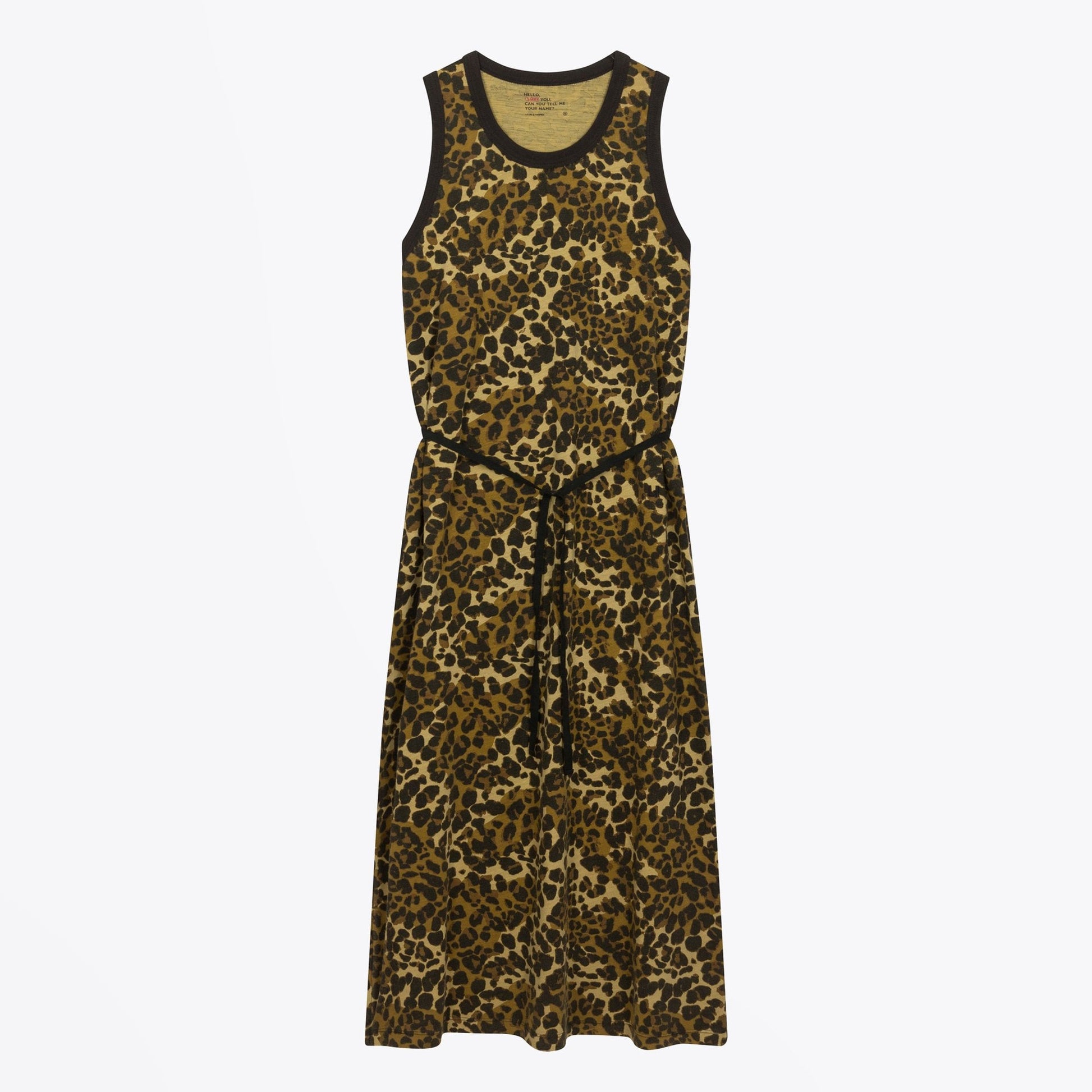 Introducing one of our newest women's labels, Leon & Harper to Mr & Mrs Stitch. Created in Paris in 2010 by Philippe Corbin, Leon & Harper has rapidly insinuated itself into the wardrobes of free-spirited young women through its timeless basics with their unique sense of detail. Leon & Harper creates fashion that is stylish and loose, designed for free movement and subtle seduction. This midi-length dress with leopard print details is crafted in an organic cotton. This dress combines comfort and a rock look with its feline print. This sleeveless t-shirt dress has been designed with contrasting cotton belt, contrast ribbed edges and slits at the hem of the dress. Wear it with a sleeveless denim jacket to accentuate its rock look.