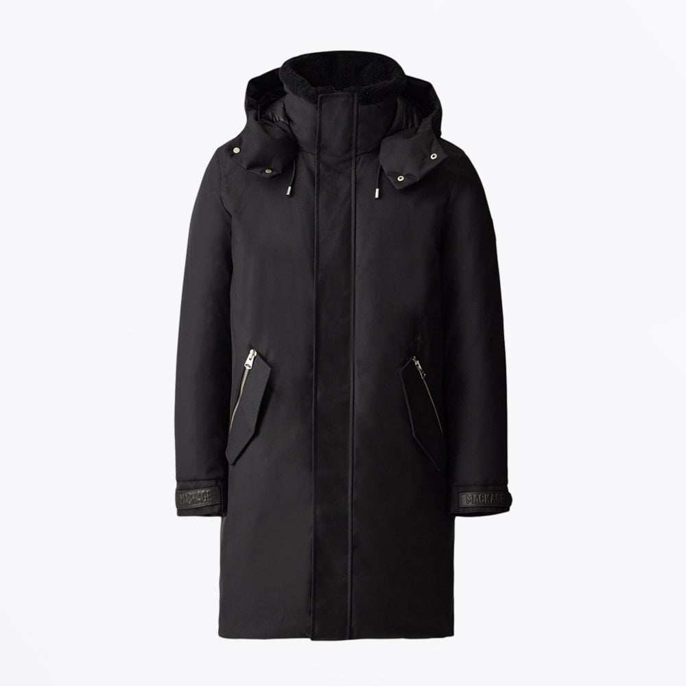 “Cold never looked this good” is Mackage’s motto and never has it been so true for a brand.  Designing ultimate outerwear that offers comfort, warmth and protection, these coats become the outfit itself. This Kason Twill Down Parka Coat with plush sheepskin lining on the stand collar and removable storm visor hood has been expertly tailored from a 2-layer abrasion-proof weave. This stand-out piece has a leather welt storm placket, insulated dual-entry flap pockets, and adjustable Velcro cuff tabs that guarantee the highest performance warmth. Added features of this coat include a removable snap hood with adjustable drawcord storm visor, centre front zip closure, rib knit storm cuffs and M logo patch on left sleeve. Timeless tailoring meets advanced adventure-ready tech.
