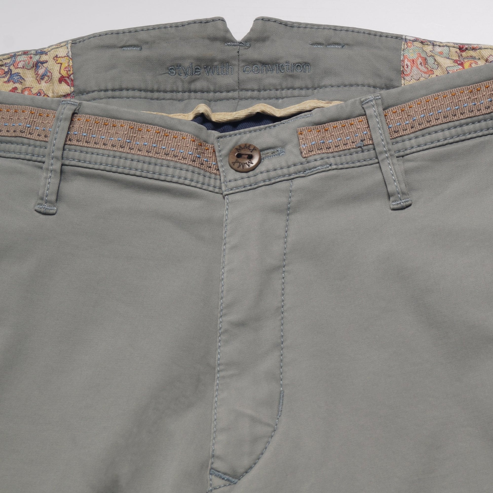 MMX is a German menswear brand with more than 55 years of experience in the textile industry. They blend modern design and technical expertise. These chinos are the perfect addition to any wardrobe for their wonderful versatility. These chinos are crafted from a soft and sustainable cotton blend material in an interesting green colour, featuring a branded leather patch at the back, double button and zip fastenings and a contrasting pocket bag and yolk. Wear these chinos with a Thomas Maine merino knitted polo shirt, and a pair of designer trainers, for a smart but relaxed outfit.