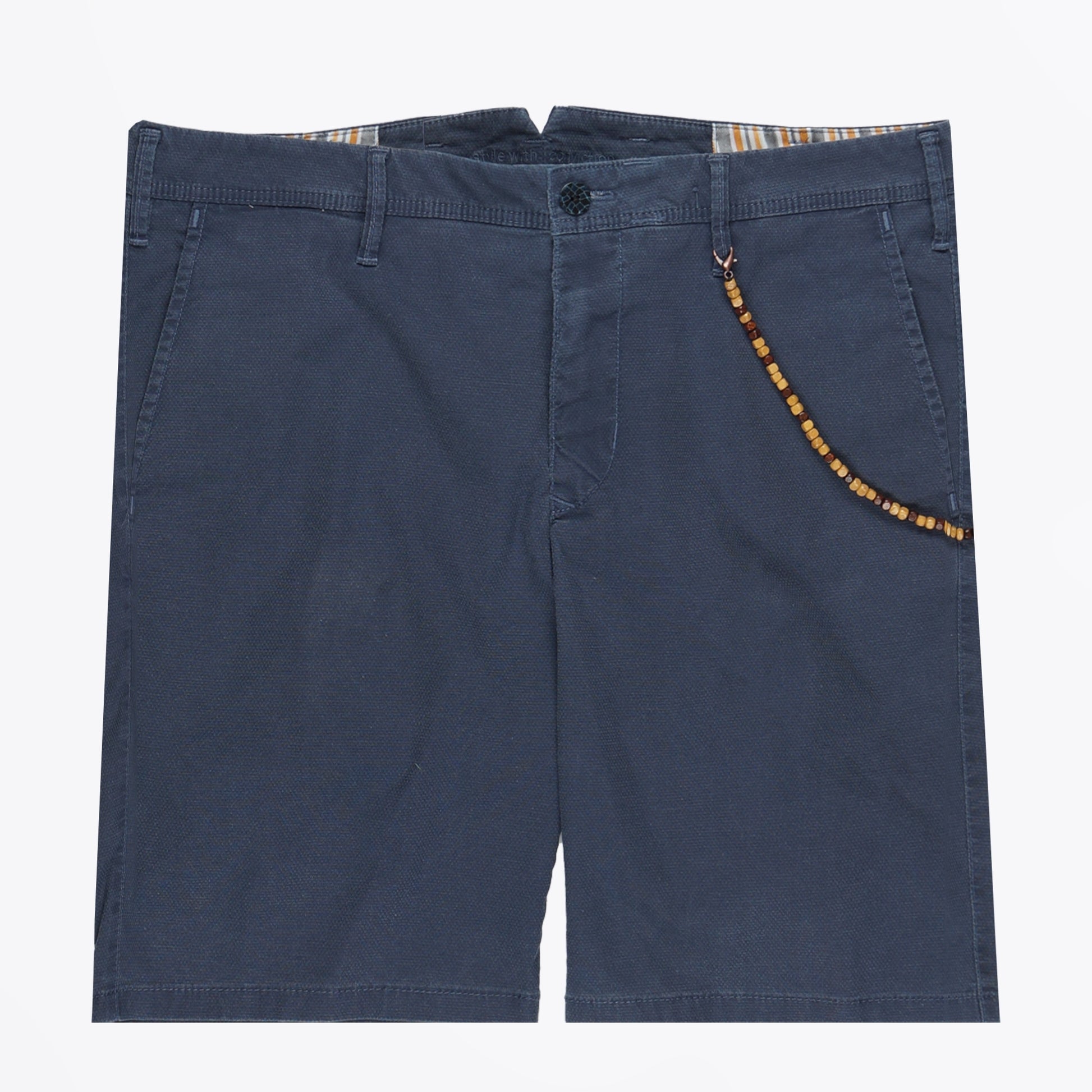 MMX is a German menswear brand with more than 55 years of experience in the textile industry. They blend modern design and technical expertise. Update your new season wardrobe with the perfect chino shorts. This pair of shorts are crafted in thick stretch navy fabric, with side pockets, welted back pockets, belt loops, a button and zip fly, and a detachable charm crafted from wooden beads. Wear these shorts with a polo shirt and some designer trainers.