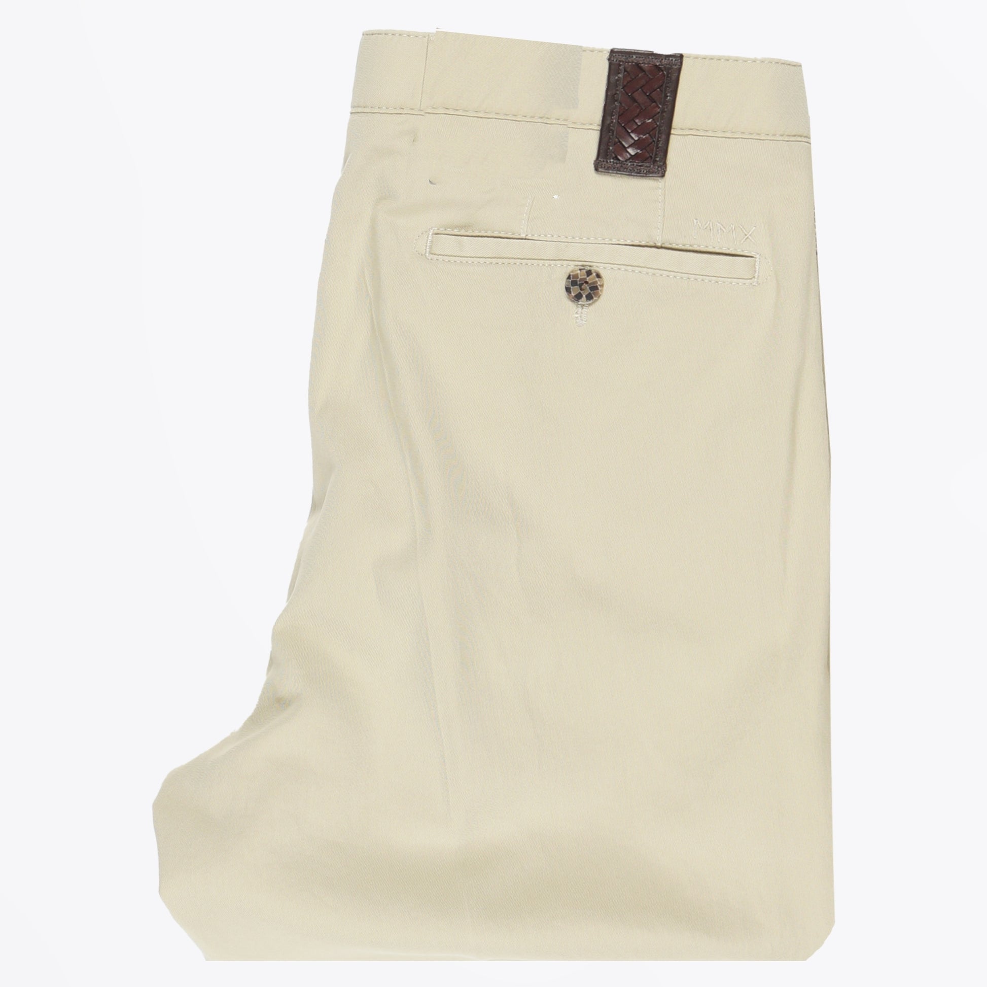 MMX is a German menswear brand with more than 55 years of experience in the textile industry. The brand blends modern design and technical expertise. Update your wardrobe with these MMX trousers. Created with Cotton material in a beige colour, these trousers include two side pockets, button and zip fastening, belts loops, two buttoned rear pockets and a leather patch on the back of the waste line. Wear these with a Paul Smith polo shirt and your favourite designer Hoff trainers.