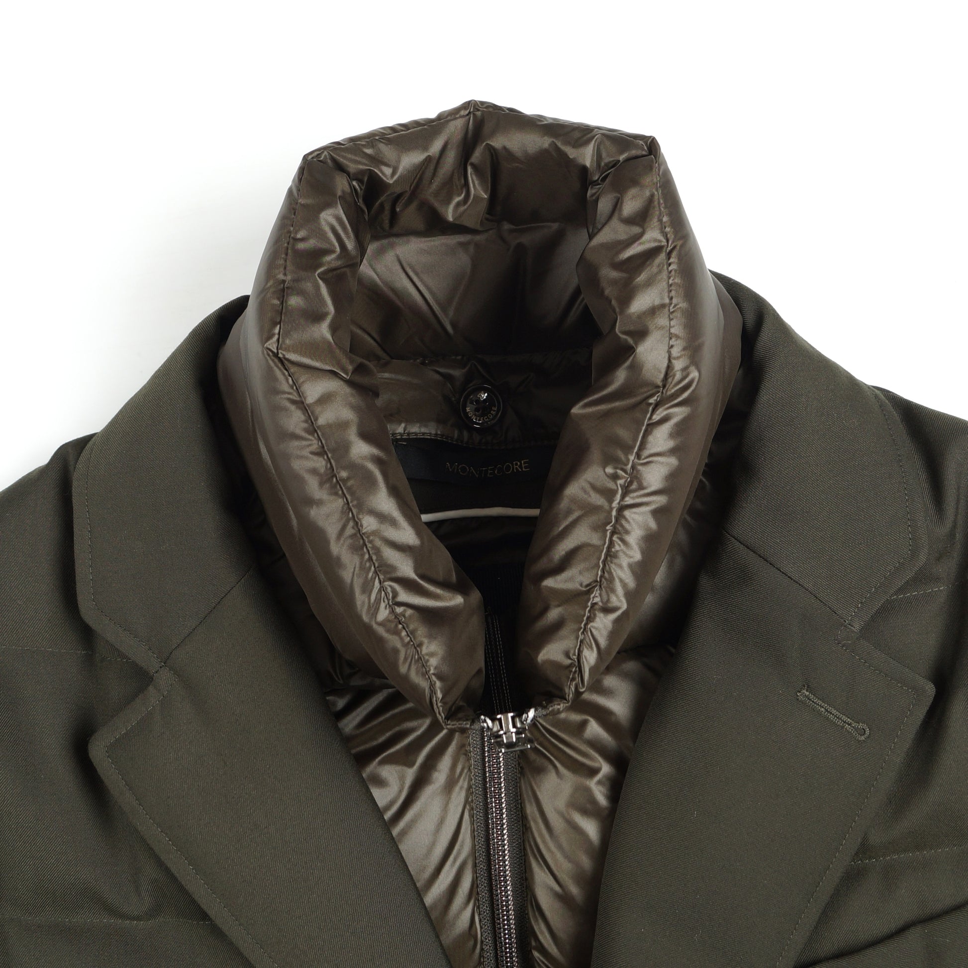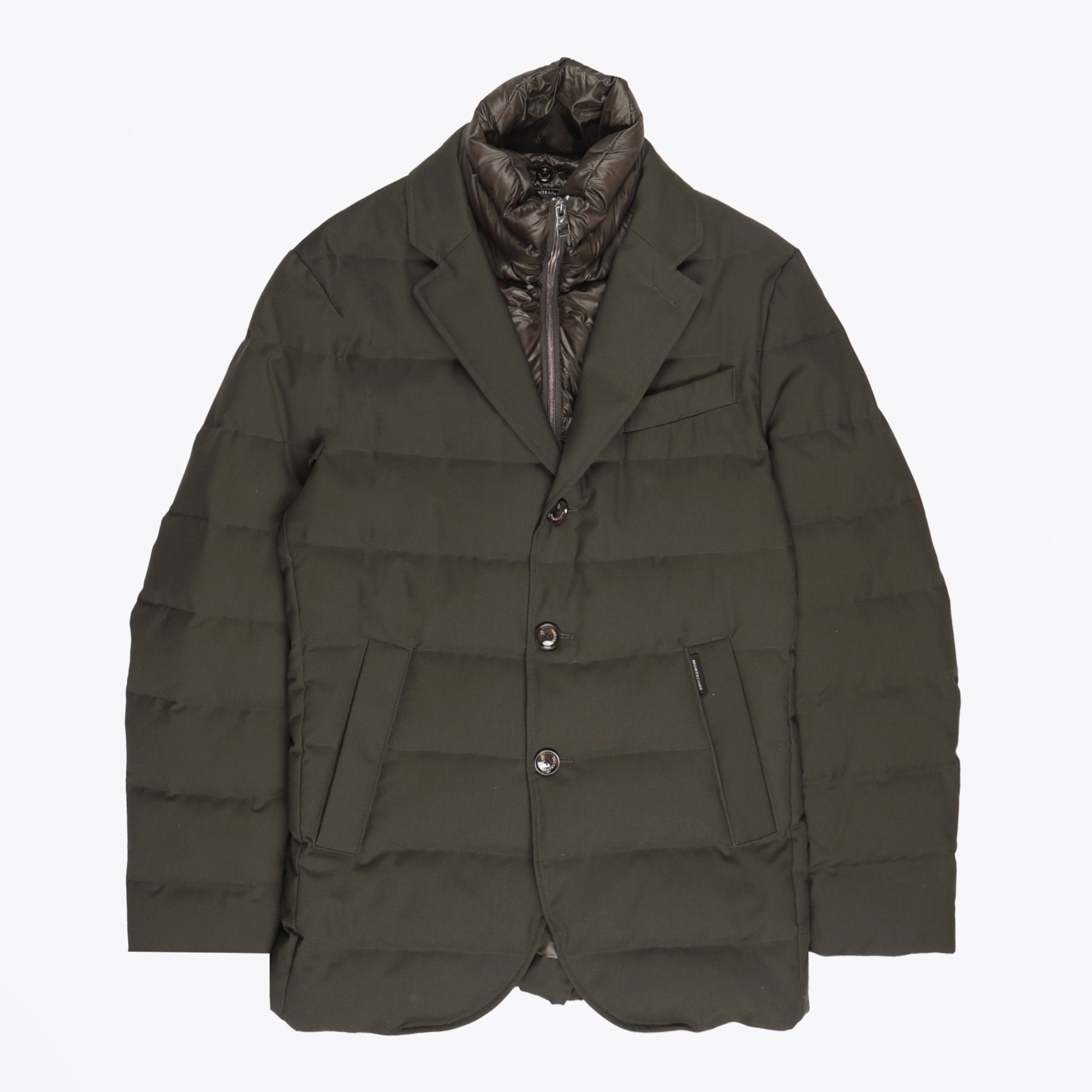 Known for their innovation in outerwear, creating a stylish aesthetic full of personality, Montecore is an Italian brand with striving for creative and timeless design in all their pieces, and becoming a benchmark for outerwear tailoring. For the ultimate luxury option, while still being wonderfully practical, this Montecore jacket is a great option for the colder months. Crafted with a duck down and feather lining, this khaki jacket features a removable zip and button fastening, with 2 zipped front pockets, a lapel and high neckline, two zipped interior pockets, and the brand logo displayed on the front pocket. Wear this coat has your daily staple with a Thomas Maine knitted pullover and some designer denim.