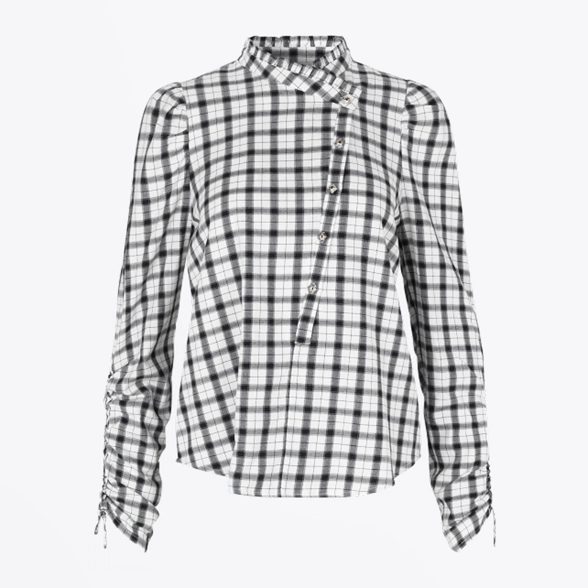 Munthe is a Copenhagen-based label known for its signature style that represents the carefree attitude of the cool and casual Scandinavian girl. Munthe's design is best know for its hand-painted prints and feminine silhouettes. High neck shirt in check print crafted in a lightweight cotton fabric.This feminine style has been designed with puffy sleeves with adjustable string gatherings and button closure. A beautiful piece that could be worn with bootcut jeans for a cool look!