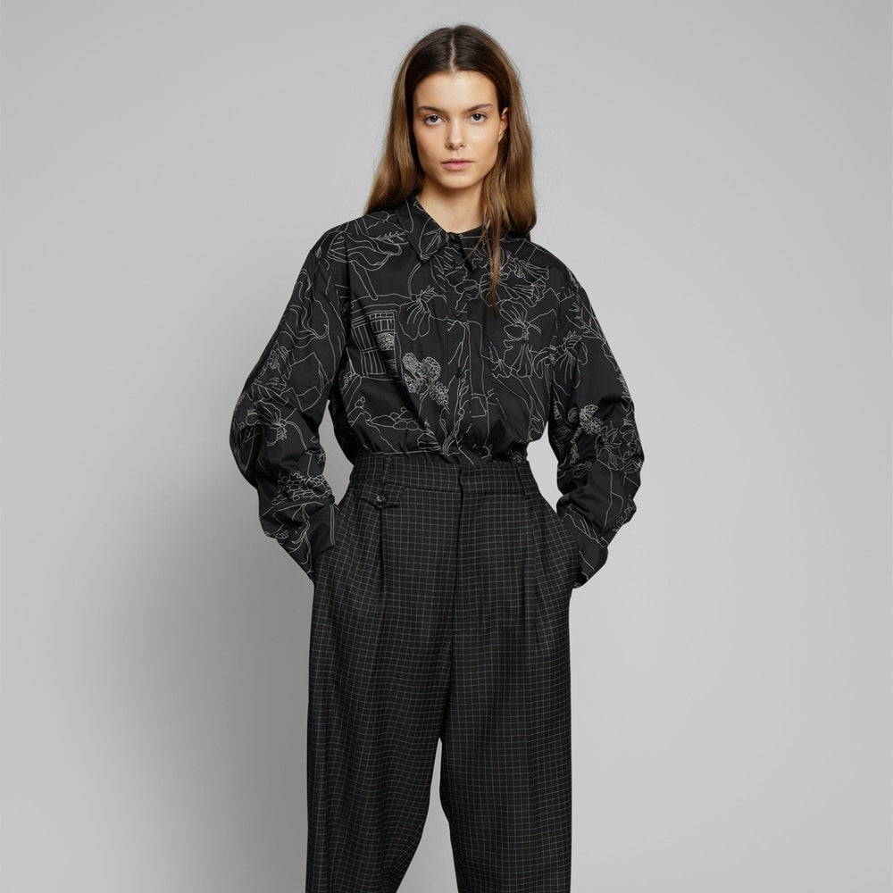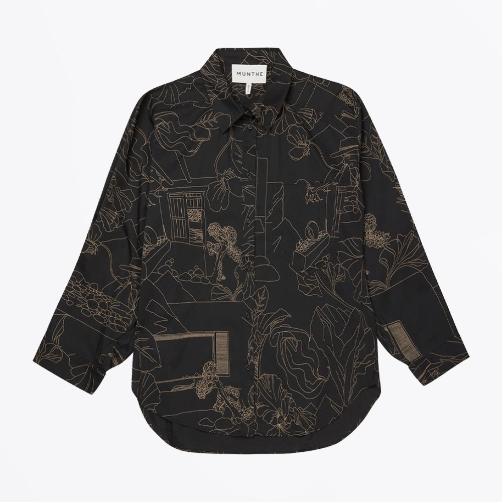 Munthe is a Copenhagen-based label known for its signature style that represents the carefree attitude of the cool and casual Scandinavian girl. Munthe's designs are best known for their hand-painted prints and feminine silhouettes. Add fun to your designer shirts with this option from Munthe. This earl shirt features an asymmetric print design throughout the shirt. It also includes long sleeves, button cuffs, a button up fastening and a collared neckline.