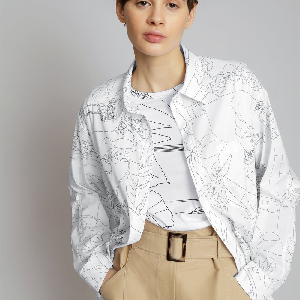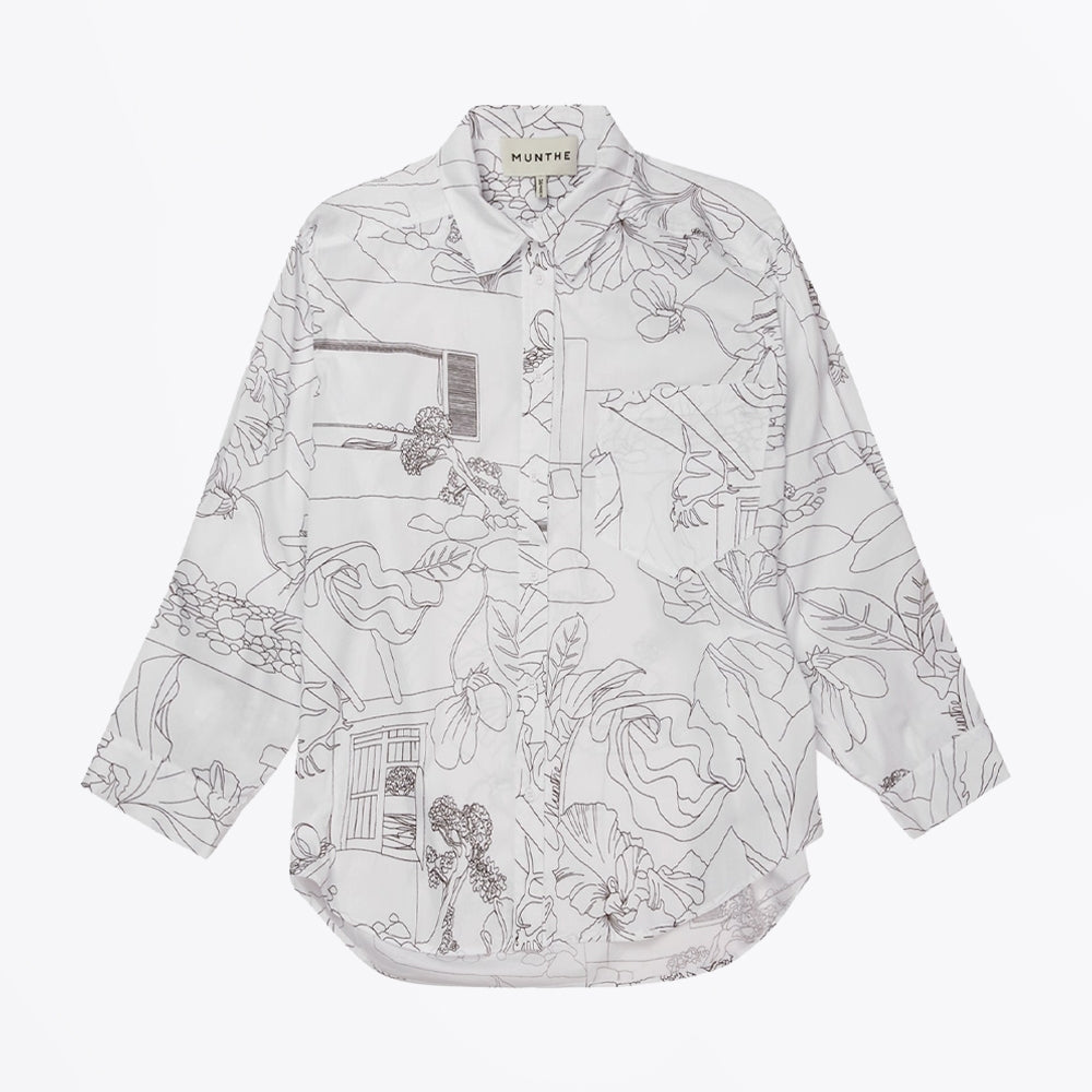 Munthe is a Copenhagen-based label known for its signature style that represents the carefree attitude of the cool and casual Scandinavian girl. Munthe's designs are best known for their hand-painted prints and feminine silhouettes. Add fun to your designer shirts with this option from Munthe. This earl shirt features an asymmetric print design throughout the shirt. It also includes long sleeves, button cuffs, a button up fastening and a collared neckline.
