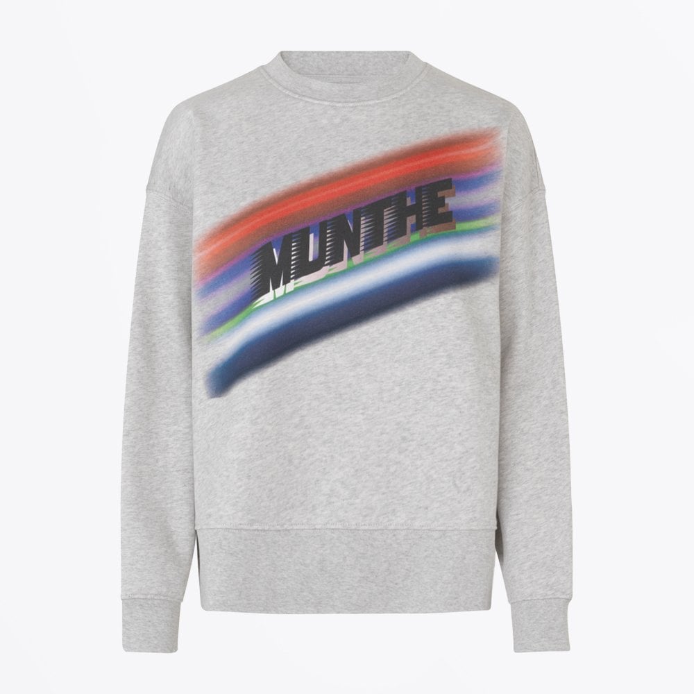 Munthe is a Copenhagen-based label known for its signature style that represents the carefree attitude of the cool and casual Scandinavian girl. Munthe's design is best know for its hand-painted prints and feminine silhouettes. This soft grey sweatshirt crafted in a lightweight breathable organic cotton fabric is designed in a loose fit and is relatively short. This long-sleeved sweater features a MUNTHE logo, dropped shoulders and a rib along the round neck, at the end of the sleeves and at the bottom.