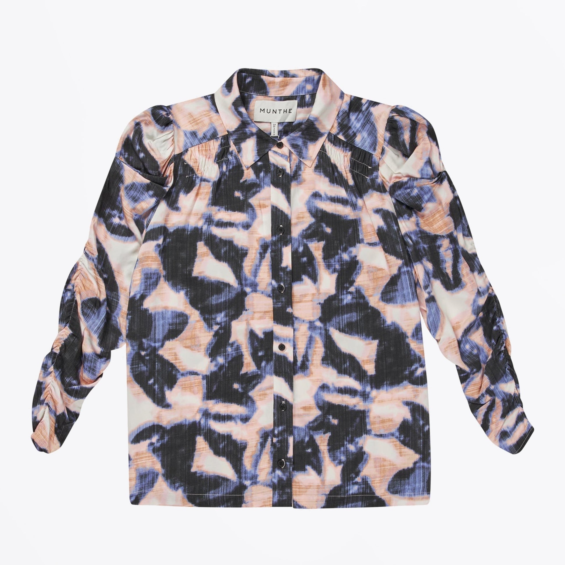 Munthe is a Copenhagen-based label known for its signature style that represents the carefree attitude of the cool and casual Scandinavian girl. Munthe's designs are best known for their hand-painted prints and feminine silhouettes. Add a fun to your designer tops with this option from Munthe. This Blouse with a beautiful all-over print, and elegant drawstring and smock details on the shoulders and sleeves. The blouse has an elegant button closure and lfeatures ong sleeves with a small puff at the shoulders. Pair with the Tuxya leather skirt or Paige jeans.