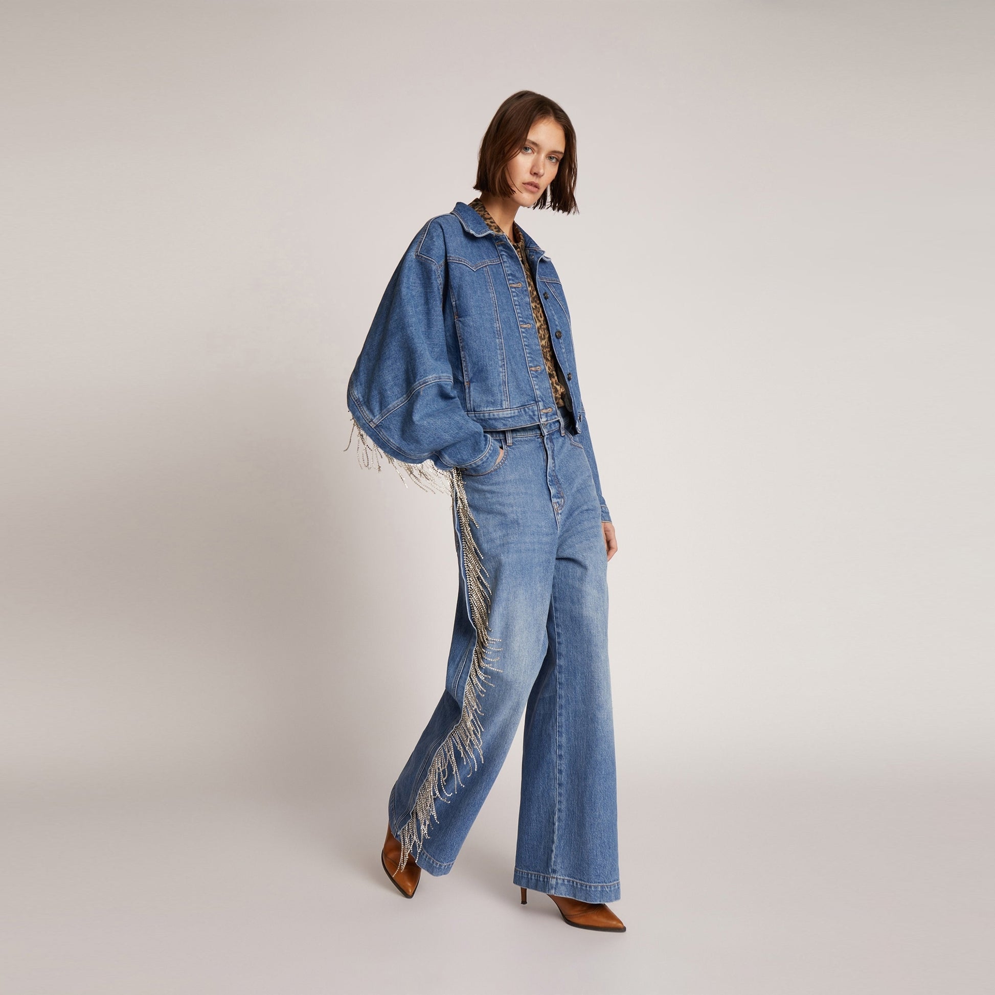 Munthe is a Copenhagen-based label known for its signature style that represents the carefree attitude of the cool and casual Scandinavian girl. Munthe's designs are best known for their hand-painted prints and feminine silhouettes. Add fun to your designer wardrobe with this option from Munthe. This Truffy denim jacket is in an indigo colour featuring a collared neckline, button up fastening, oversize loose sleeves and side pockets. Wear this jacket with some Paige jeans and Hoff sneakers.