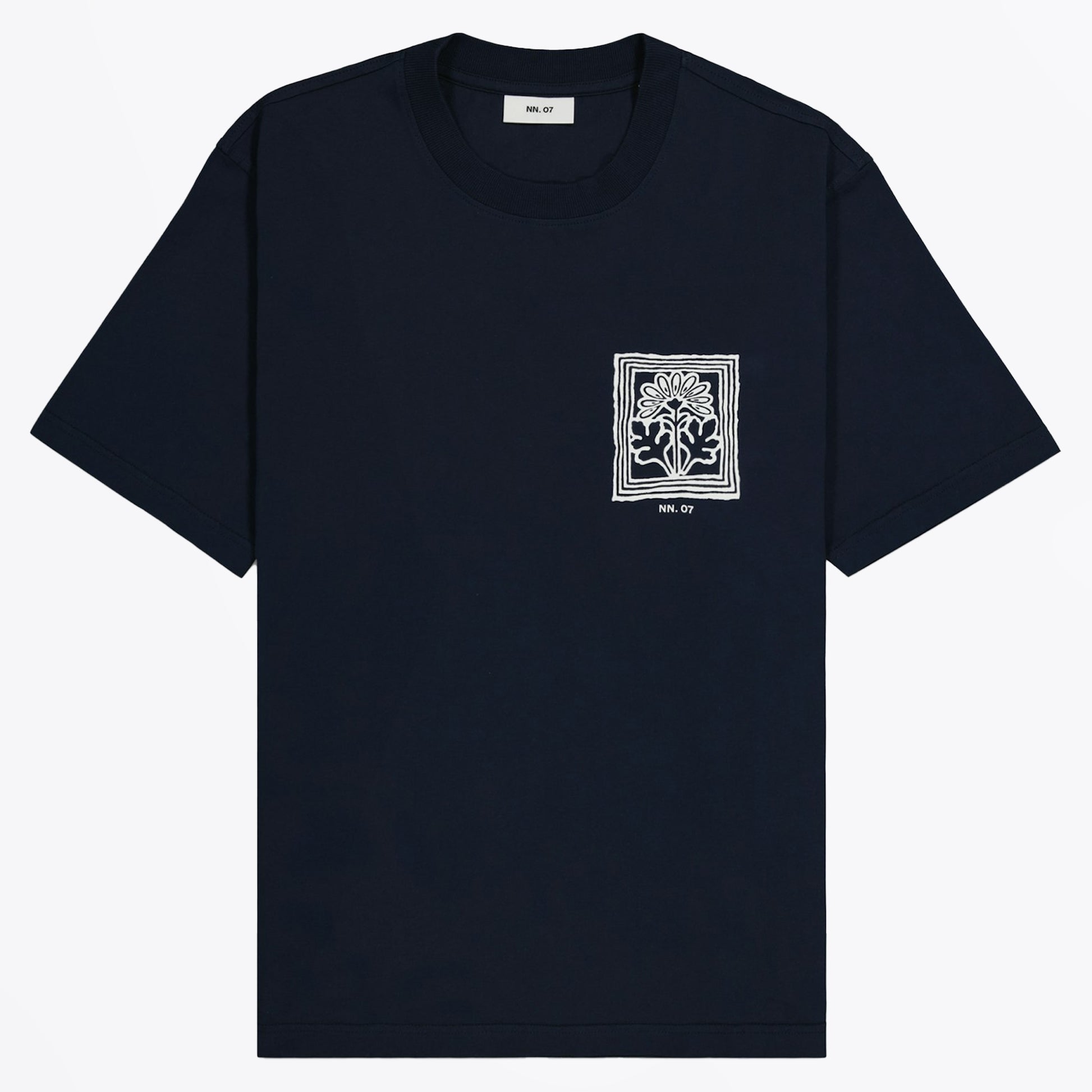 Founded by two friends in 2007, NN07 strives to change the modern to casual wardrobe. Based in Copenhagen however the brand strives to not to focus on nationalities rather personalities when it comes to their unique garments. Inspired by dedicated people and communities, the brand creates products with attention to the demands of today. This t-shirt is crafted with Pima cotton which is smoother and stronger than conventional cotton. The t-shirt features a ribbed crew neckline, short sleeves, logo print on the chest and made in a navy shade. Wear this t-shirt with a pair of designer jeans and designer trainers.