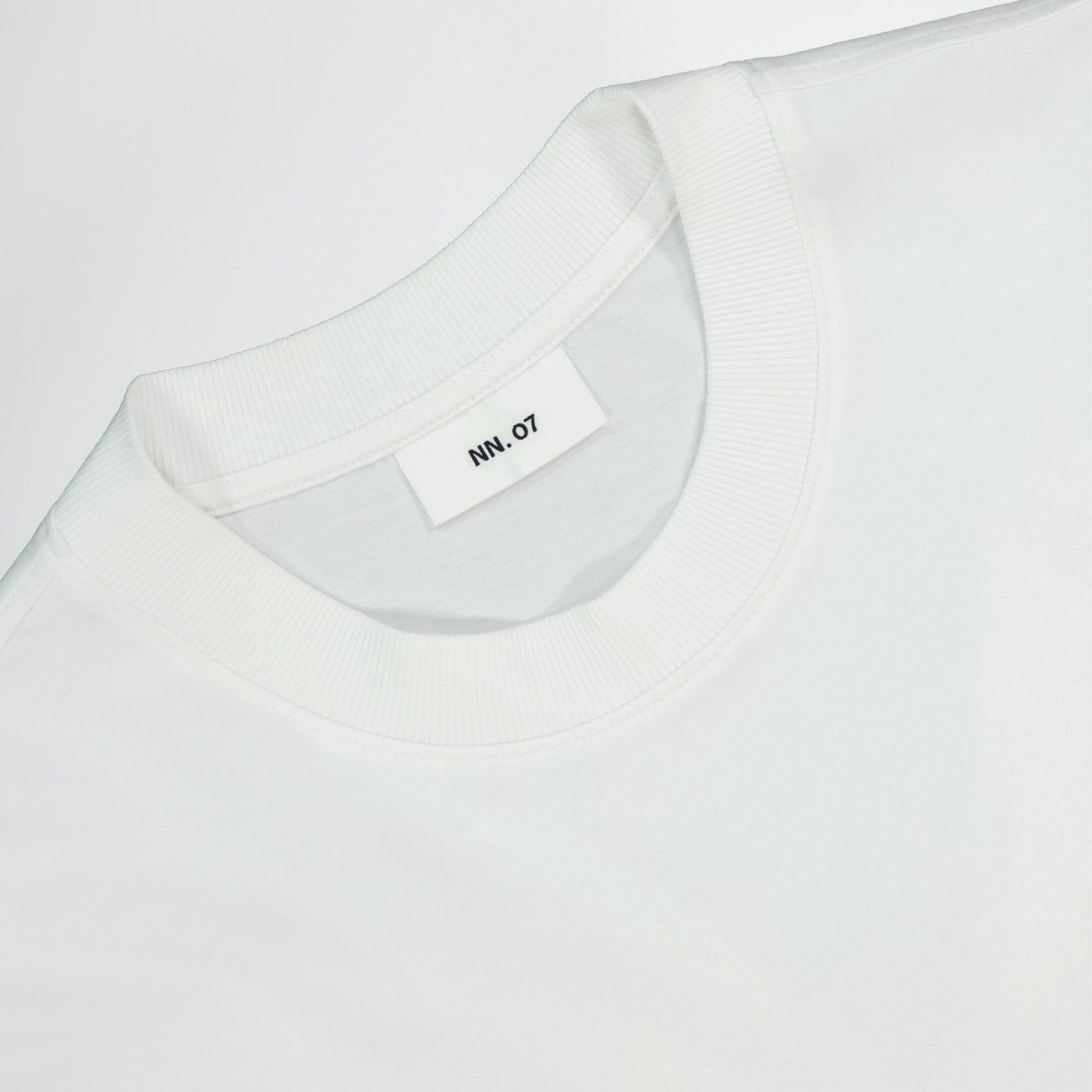 Founded by two friends in 2007, NN07 strives to change the modern to casual wardrobe. Based in Copenhagen however the brand strives to not to focus on nationalities rather personalities when it comes to their unique garments. Inspired by dedicated people and communities, the brand creates products with attention to the demands of today. This T-shirt is crafted with Pima cotton which is smoother and stronger than conventional cotton. The t-shirt features a crew neckline, shirt sleeves and made in a white shade. Wear this t-shirt with a pair of designer jeans and designer trainers.