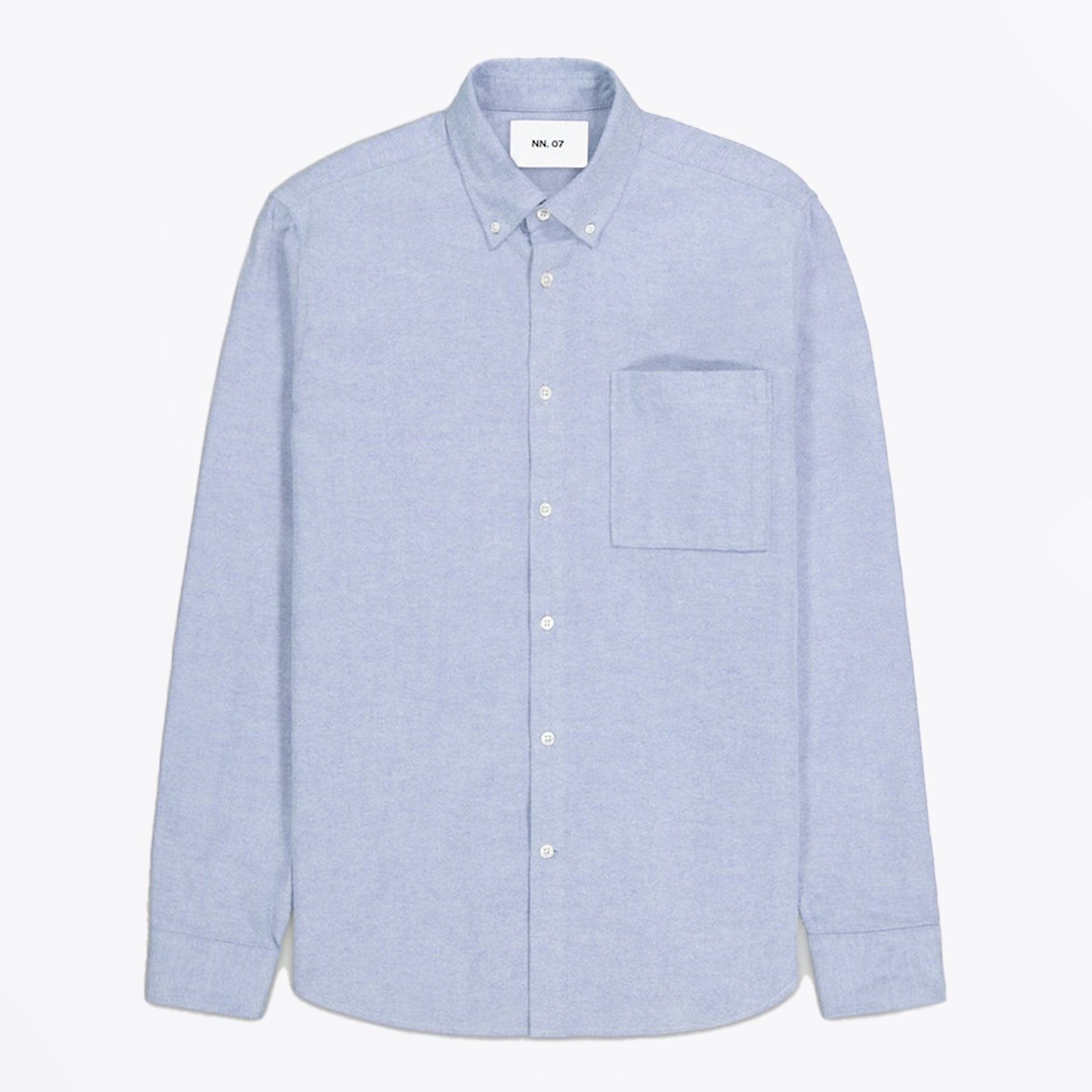 Founded by two friends in 2007, NN07 strives to change the modern to casual wardrobe. Based in Copenhagen however the brand strives to not to focus on nationalities rather personalities when it comes to their unique garments. Inspired by dedicated people and communities, the brand creates products with attention to the demands of today. This shirt is crafted with premium cotton in a blue colouring. It includes a patch pocket, curved hemline, button down fastening, collared neckline, and button cuffs. Wear this shirt with a pair of designer jeans and designer trainers.