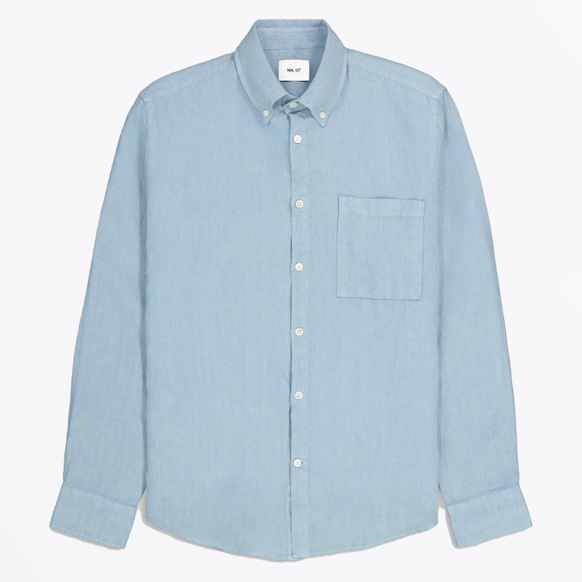 Founded by two friends in 2007, NN07 strives to change the modern to casual wardrobe. Based in Copenhagen however the brand strives to not to focus on nationalities rather personalities when it comes to their unique garments. Inspired by dedicated people and communities, the brand creates products with attention to the demands of today. This Arne shirt features a collared neckline, button down fastening, patch pocket and a curved hem. Wear this shirt with a pair of universal works trousers and some HofF sneakers.