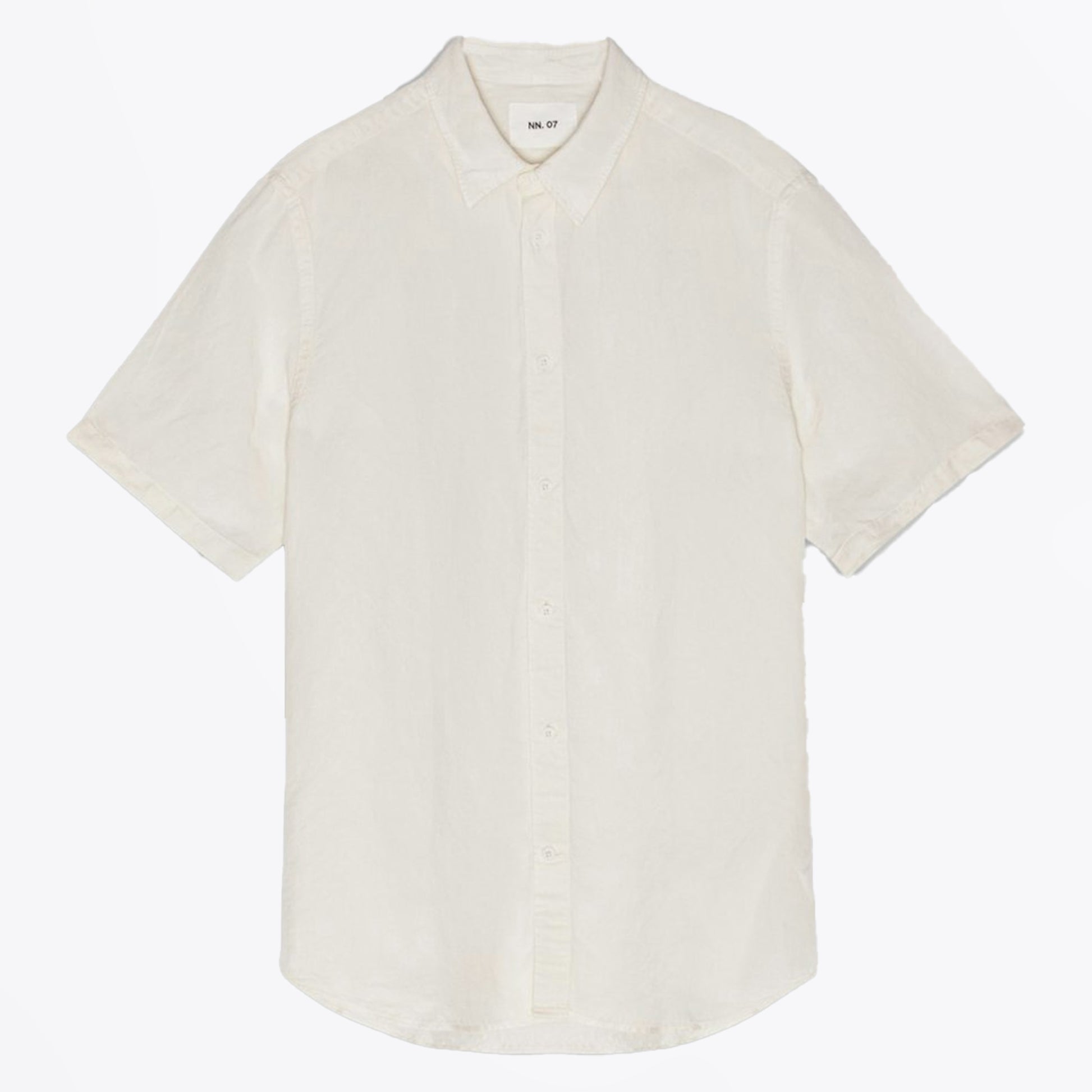Founded by two friends in 2007, NN07 strives to change the modern to casual wardrobe. Based in Copenhagen however the brand strives to not to focus on nationalities rather personalities when it comes to their unique garments. Inspired by dedicated people and communities, the brand creates products with attention to the demands of today. This white Arne shirt features short sleeves button up fastening, collared neckline and curved hem. Wear this shirt with a pair of universal works trousers and some Hoof sneakers.