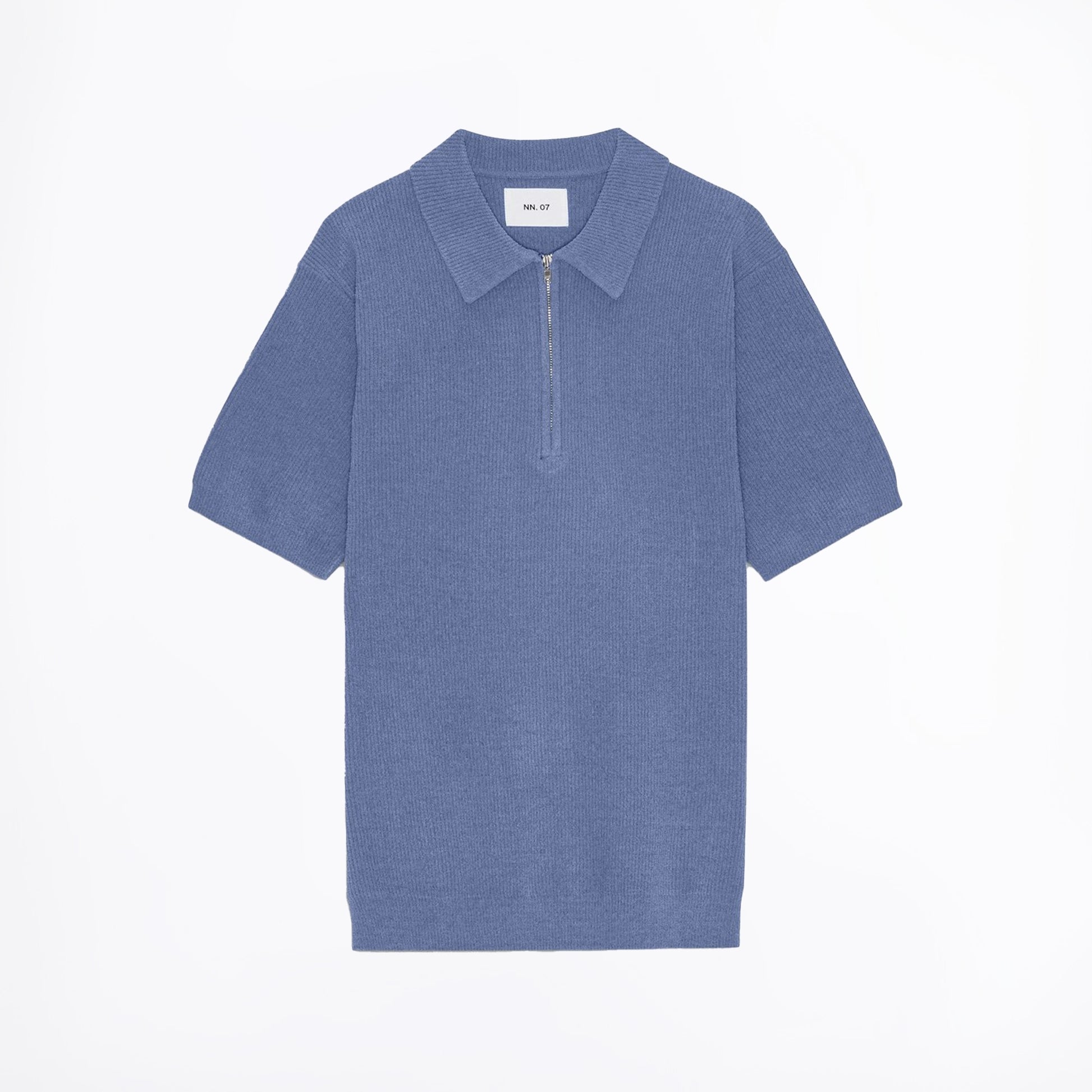 Founded by two friends in 2007, NN07 strives to change the modern to casual wardrobe. Based in Copenhagen however the brand strives to not to focus on nationalities rather personalities when it comes to their unique garments. Inspired by dedicated people and communities, the brand creates products with attention to the demands of today. This Danny Ultra zip polo shirt features a soft ribbed design throughout, polo collar neckline, short sleeves complete in a luxurious blue colour. Wear this knitted polo with some with some Edwin jeans and Victoria sneakers