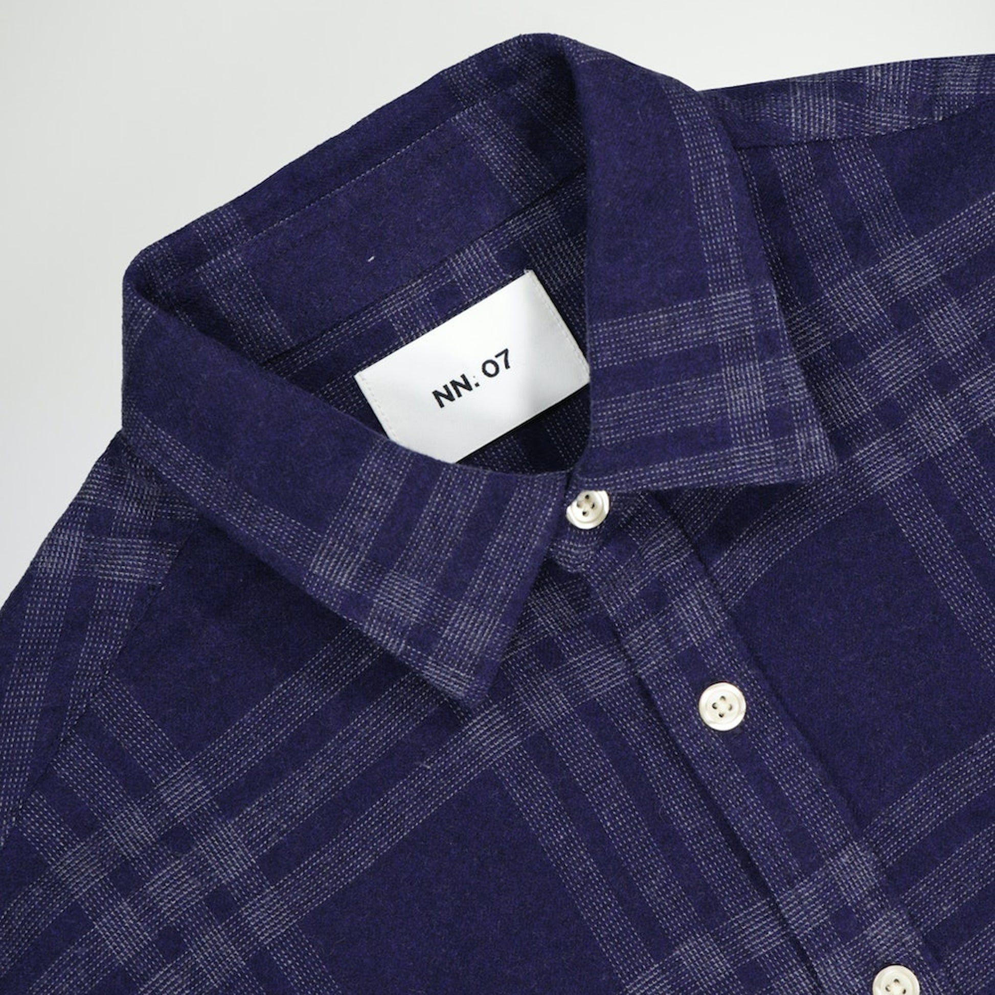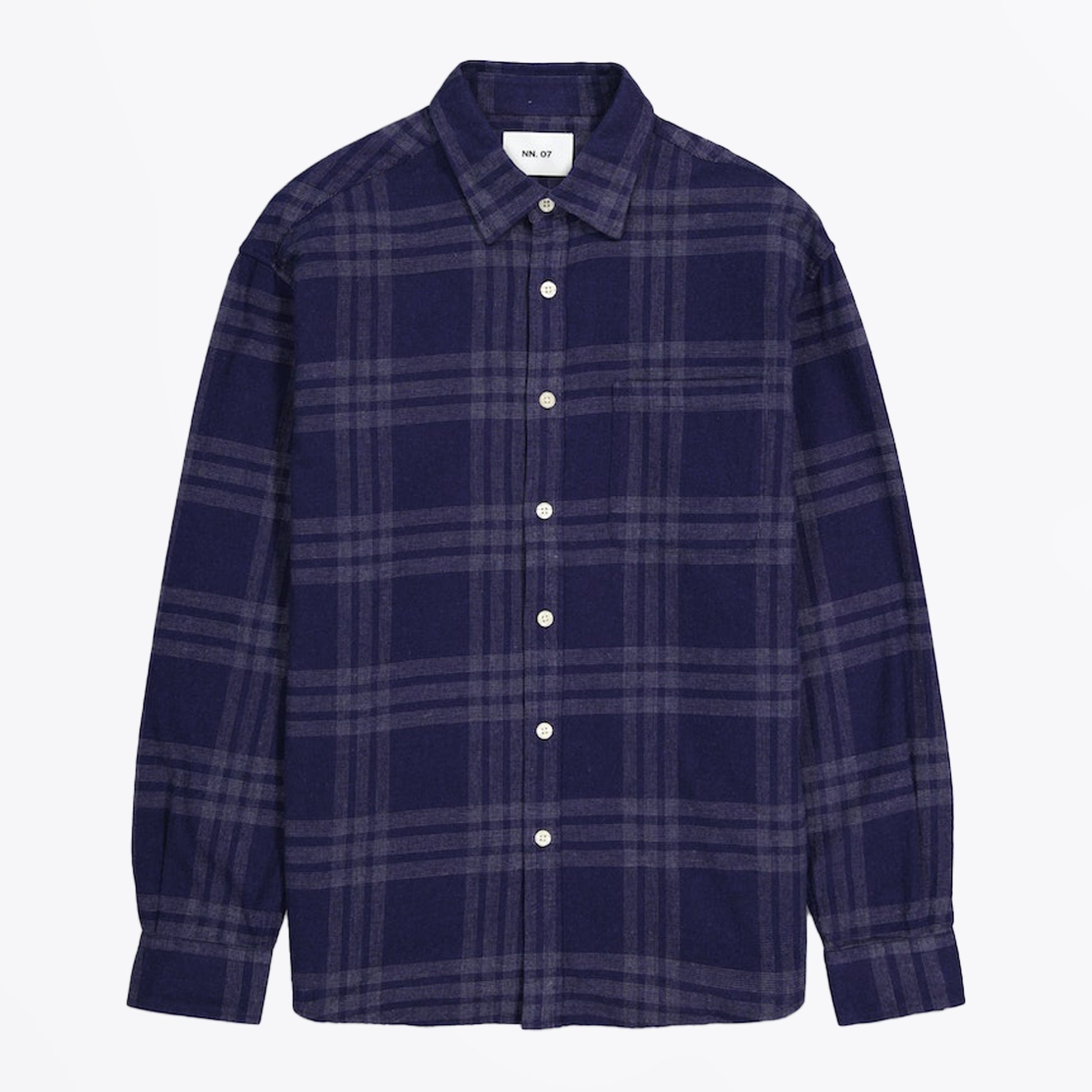 Founded by two friends in 2007, NN07 strives to change the modern to casual wardrobe. Based in Copenhagen however the brand strives to not to focus on nationalities rather personalities when it comes to their unique garments. Inspired by dedicated people and communities, the brand creates products with attention to the demands of today. This navy shirt is crafted with premium cotton and features a collared neckline, button up fastening, buttoned cuffs and a check print design. Wear this shirt with a pair of designer jeans and designer trainers.