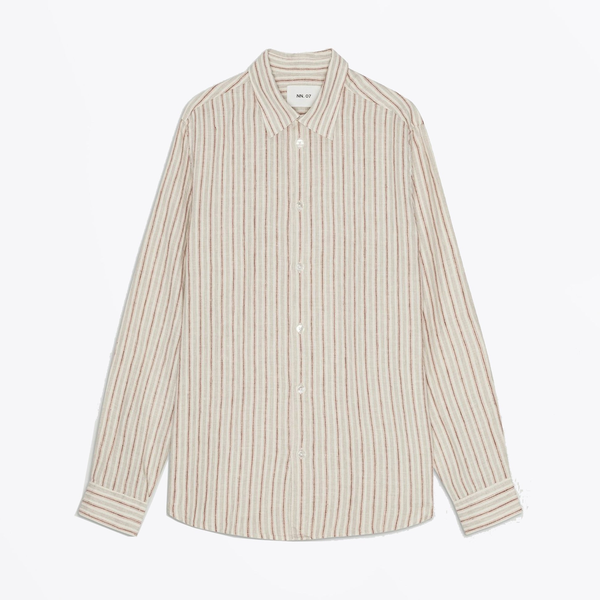 Founded by two friends in 2007, NN07 strives to change the modern to casual wardrobe. Based in Copenhagen however the brand strives to not to focus on nationalities rather personalities when it comes to their unique garments. Inspired by dedicated people and communities, the brand creates products with attention to the demands of today. This striped shirt is crafted in a crisp premium linen with a soft feel and dye to match buttons.  Wear this shirt with a pair of designer jeans and designer trainers.
