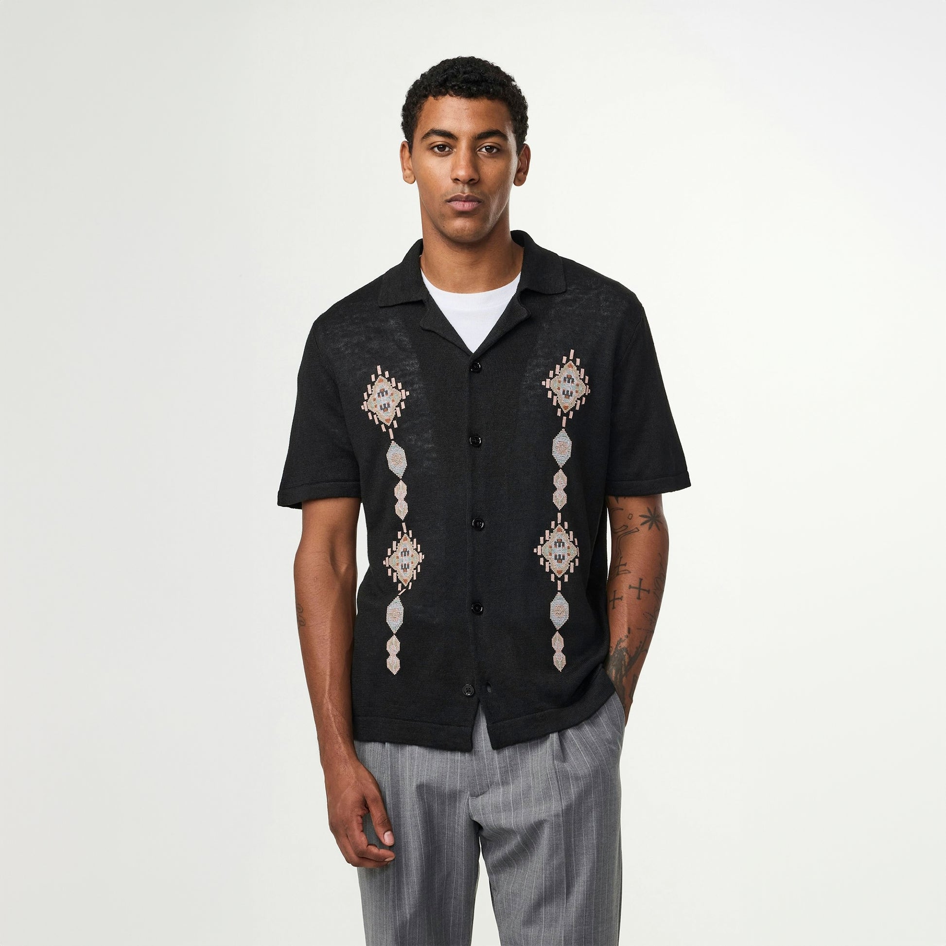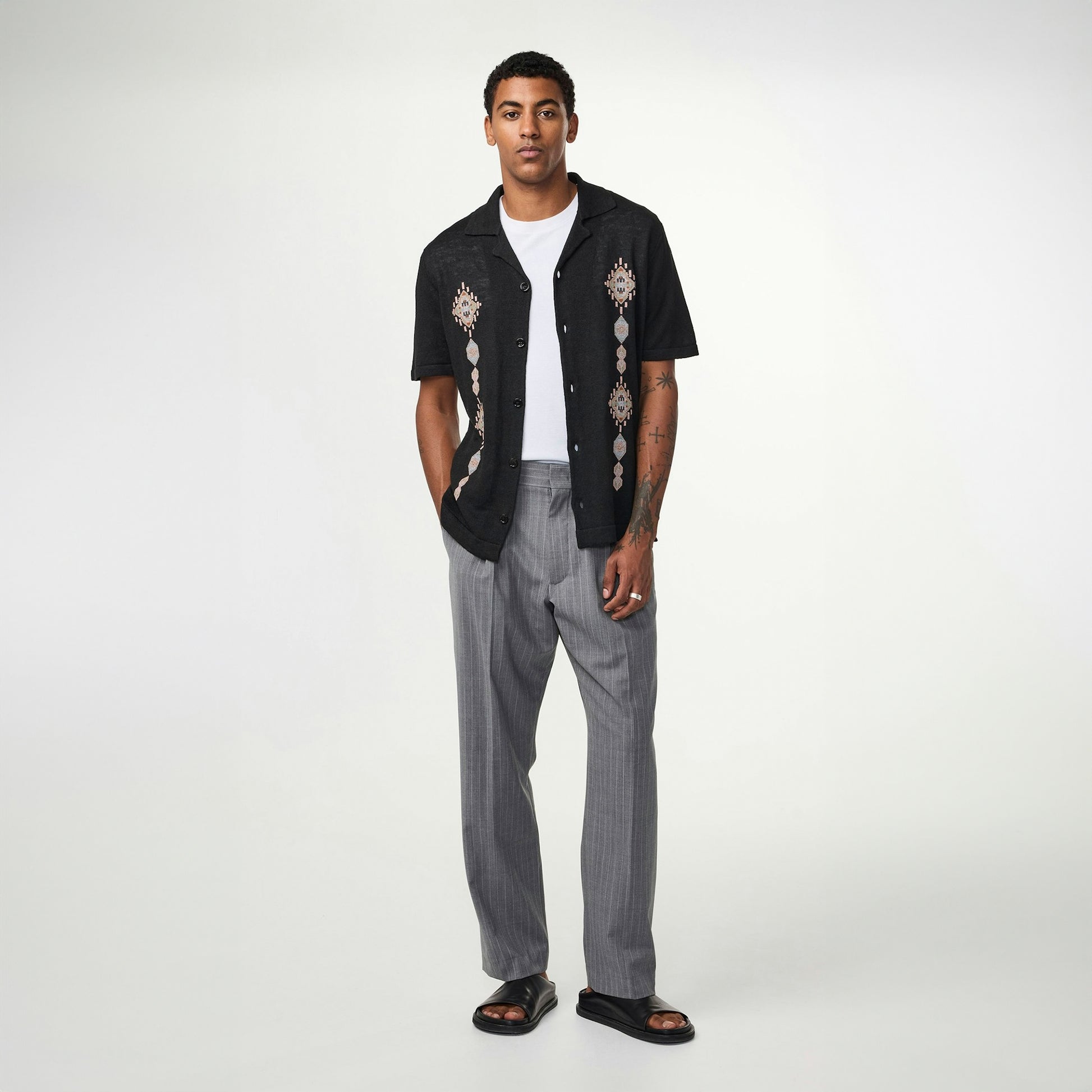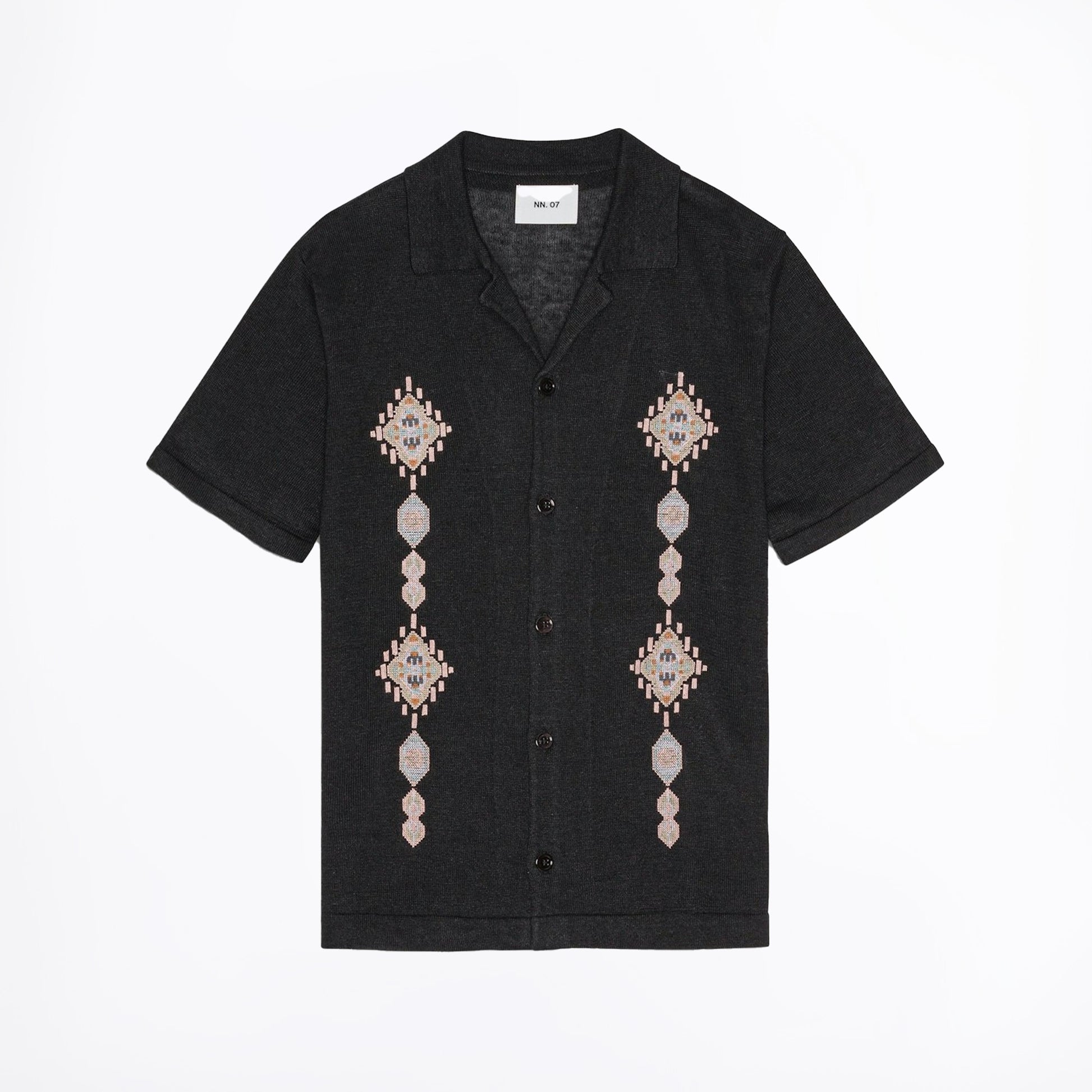 Founded by two friends in 2007, NN07 strives to change the modern to casual wardrobe. Based in Copenhagen however the brand strives to not to focus on nationalities rather personalities when it comes to their unique garments. Inspired by dedicated people and communities, the brand creates products with attention to the demands of today. This relaxed Henry textured linen bowling shirt features an aztec embroidery motif, button up fastening, raglan sleeve, a collared neckline and finished with mother of pearl buttons. Wear this shirt with some Universal Works trousers and some Hoff sneakers.